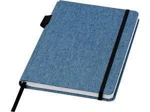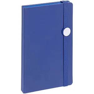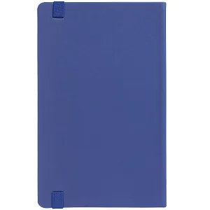 Блокнот в твердой обложке, выполнен из материала Soft Touch Ultra, синий НН, дополнен резинкой и ляссе в цвет обложки.