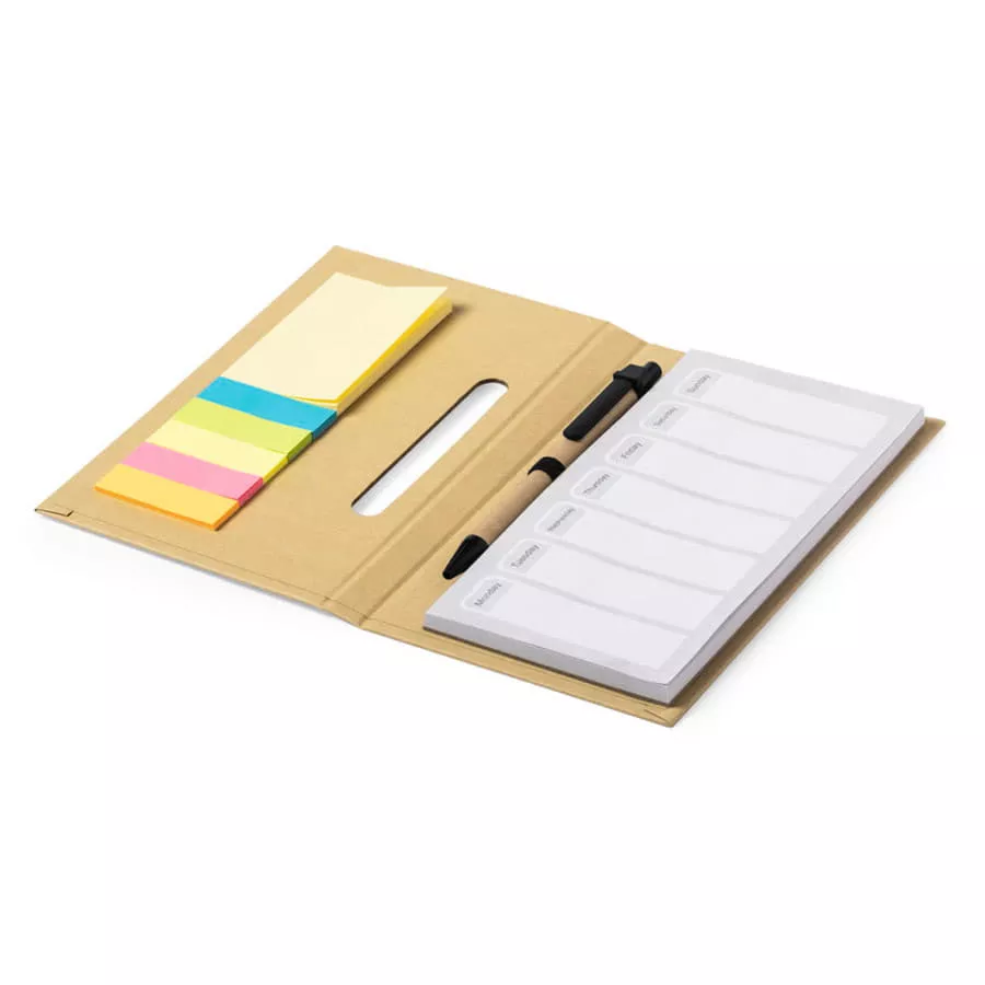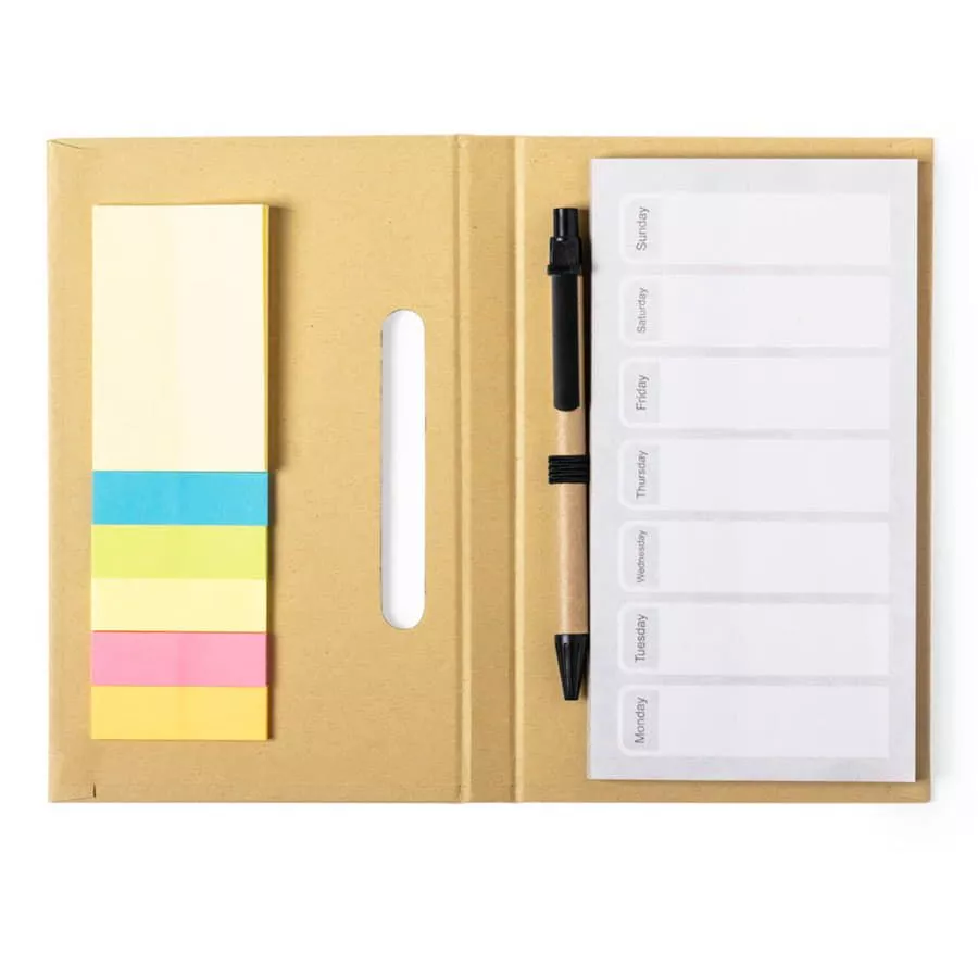 Блокнот со стикерами и ручкой KENDIL влючает в себя 60 листов с разметкой по дням недели, 25 стикеров 5 х 7,5 см и 125 мини-стикеров 1,5 х 5 см, шариковую ручку с кнопочным механизмом и корпусом из переработанного картона (чернила синие). Этот блокнот станет отличным партнером и подарком для тех, что любит, умеет или хочется научиться управлять своим временем.