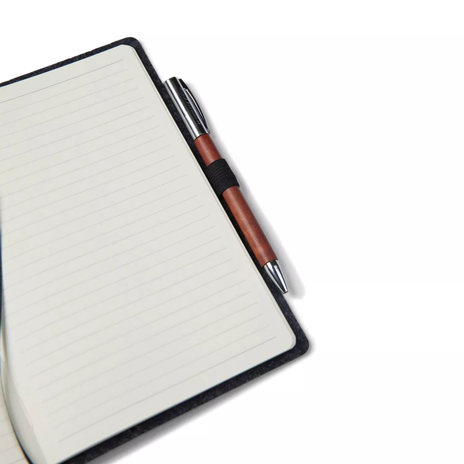 Коллекция Albon от VINGA представляет классический блокнот с твердым переплетом из переработанного фетра. Это придает ему оригинальный вид и приятную на ощупь шероховатую фактуру. Блокнот оснащен петлей для ручки или карандаша. Внутри 80 линованных листов (160 страниц) из переработанной бумаги плотностью 70 г/м². Такая плотность отлично подходит для ведения записей и создания скетчей. Строгий, классический блокнот с интересными деталями придется по душе деловым людям и тем, кто заботится о природе. Содержание вторичных материалов: 90% от общего веса изделия. Сертифицировано GRS. Эта сертификация полностью контролирует путь поставок переработанных материалов и гарантирует их наличие в изделии.