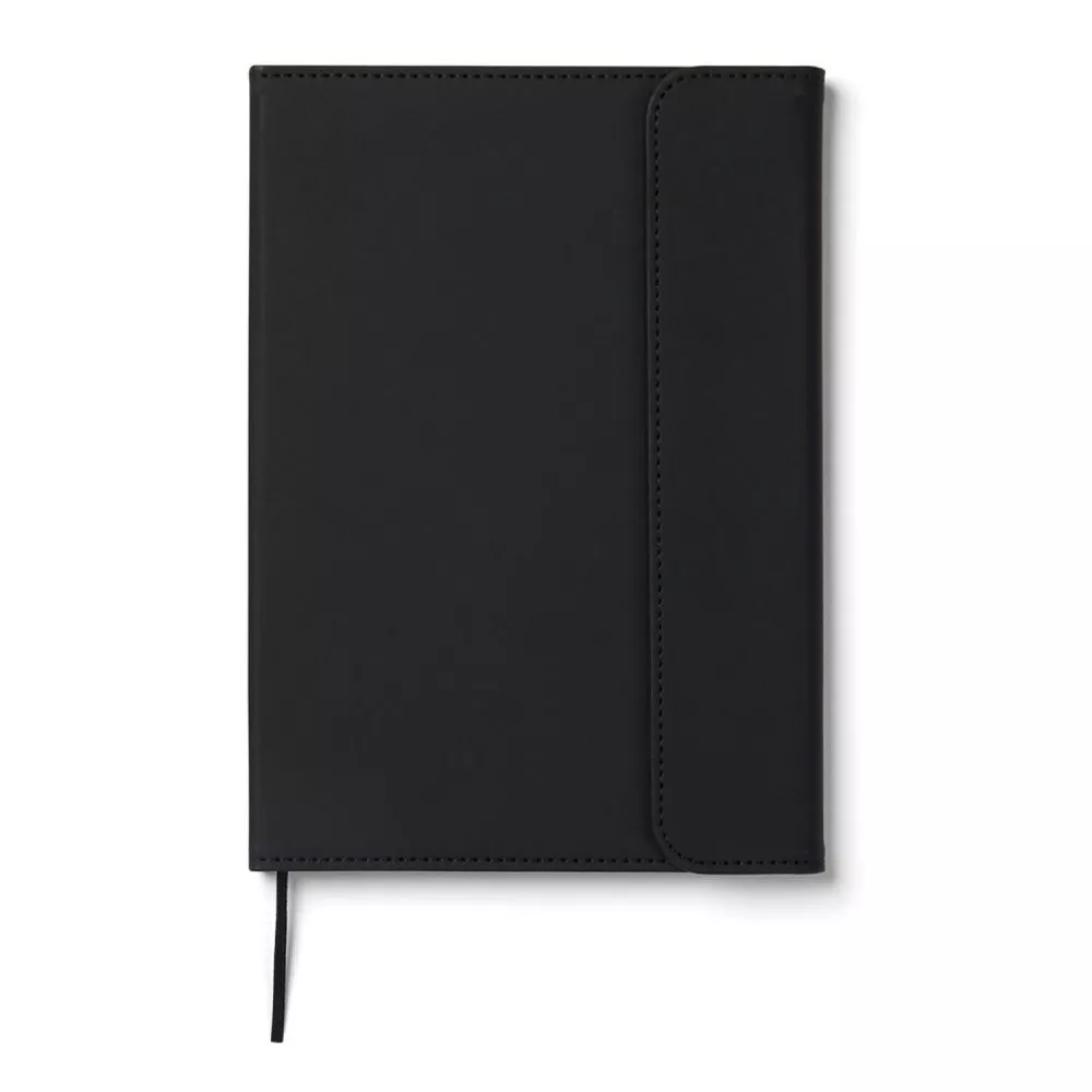 Стильный блокнот из коллекции Baltimore станет хорошим подарком для коллег, клиентов и партнеров. Его обложка изготовлена из переработанного полиуретана и оснащена магнитной застежкой, а также петлей для ручки. Благодаря покрытию soft-touch блокнот очень приятен на ощупь. Внутри 80 линованных листов (160 страниц) из переработанной бумаги плотностью 70 г/м². Такая плотность подходит для записей или создания скетчей. Внутреннюю часть можно легко заменить, когда все листы будут исписаны. Содержание вторичных материалов: 72% от общего веса изделия. Сертифицировано GRS. Эта сертификация полностью контролирует путь поставок переработанных материалов и гарантирует их наличие в изделии.