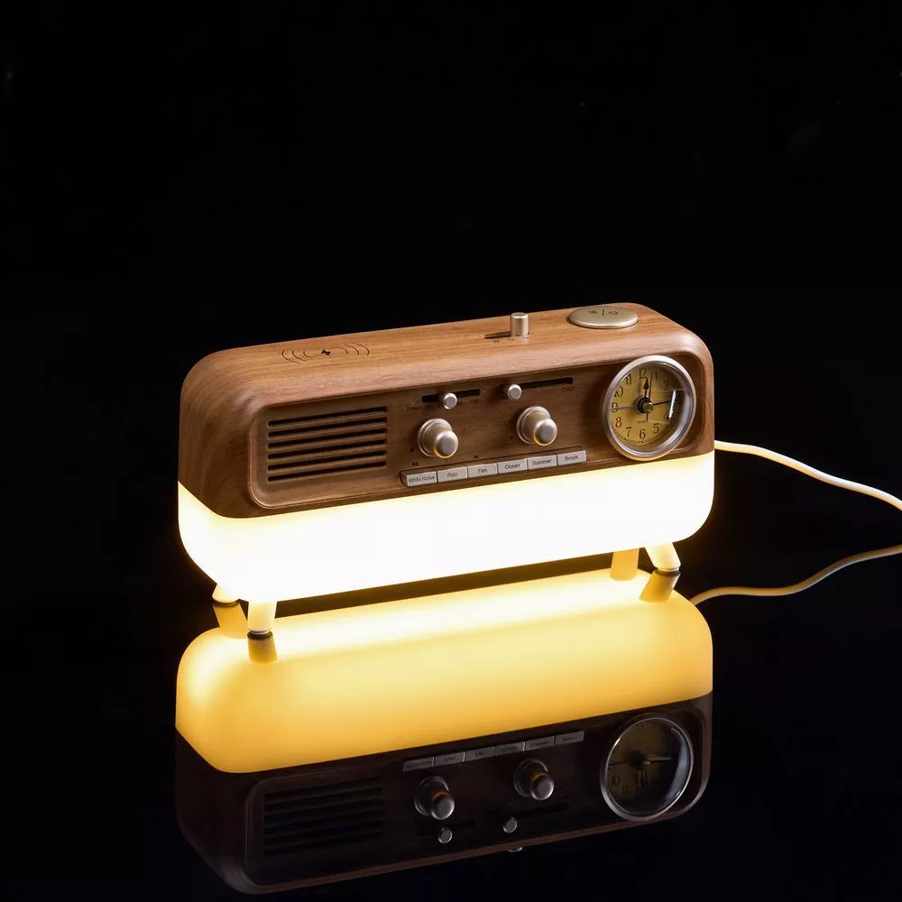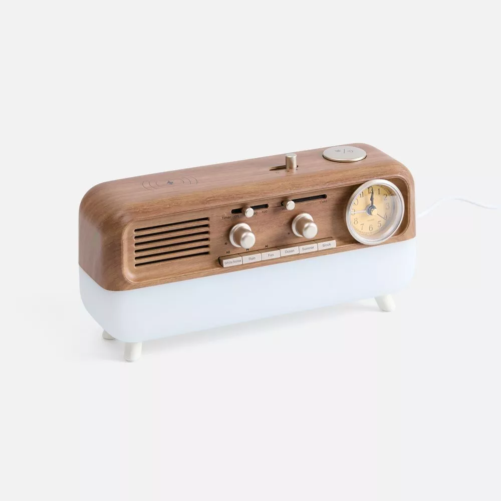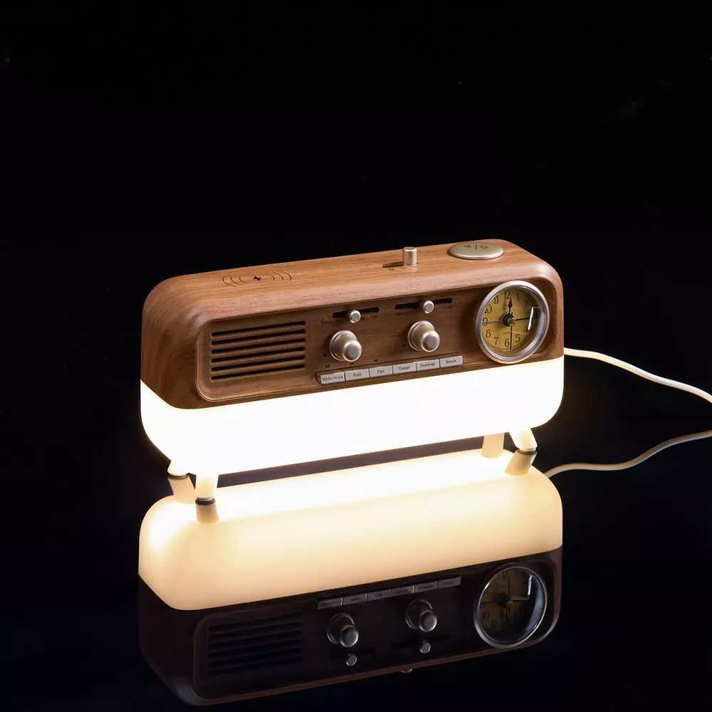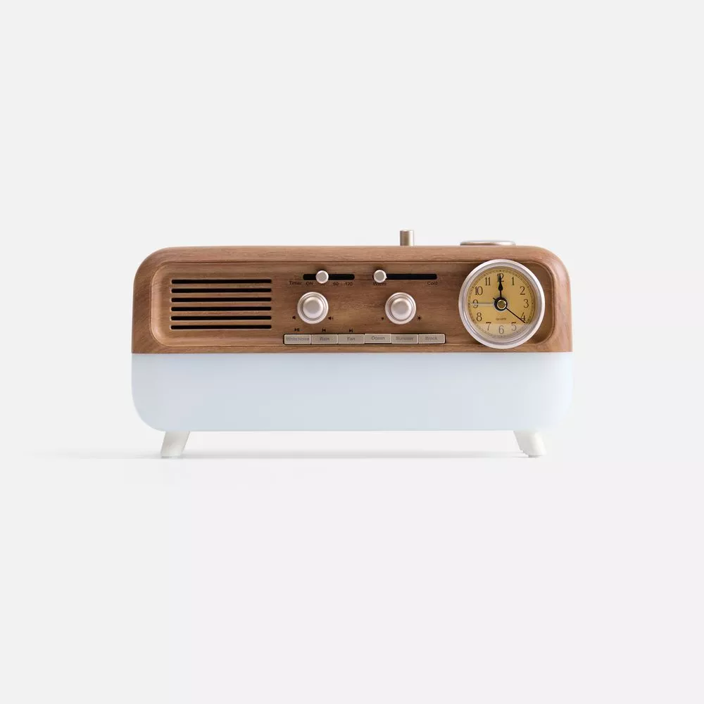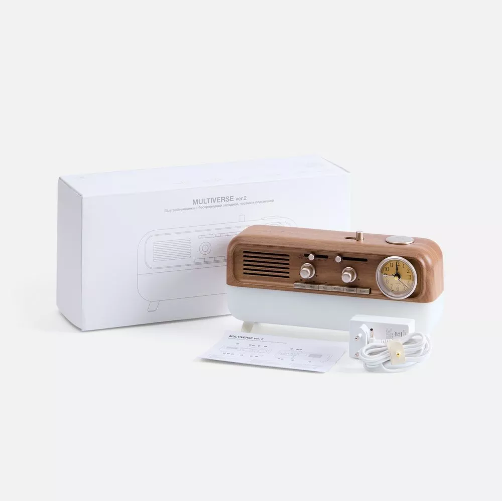 Bluetooth-колонка с аналоговыми часами Multiverse сразу привлекает внимание своей формой, напоминающей ретро-радиолу, при этом это современное и многофункциональное устройство.