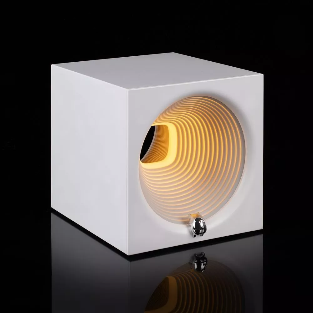 Volumetric — это bluetooth-колонка с современным минималистичным дизайном. И все же она не совсем простая — чего стоит только сенсорная кнопка регулировки диммируемой подсветки в виде милого котика.