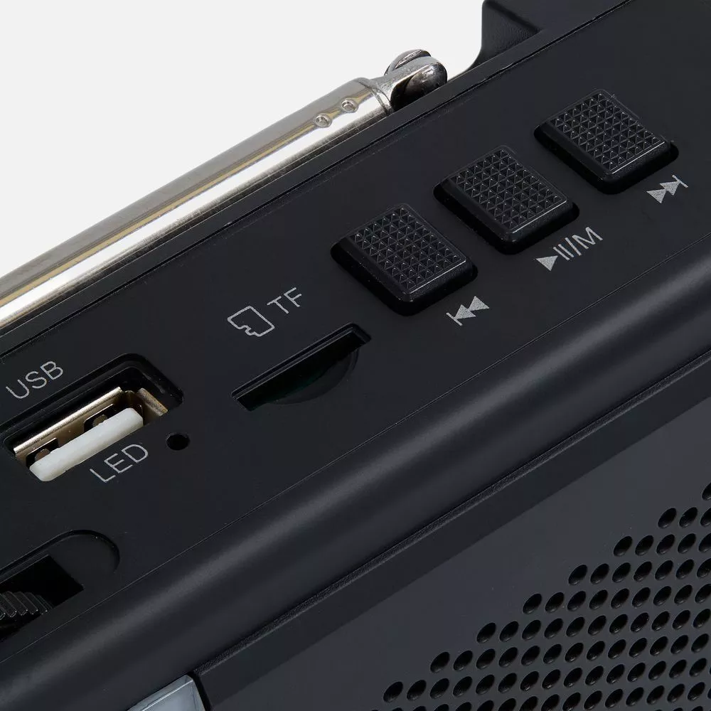 В корпусе скрываются вполне современные функции: возможность воспроизведения музыки по Bluetooth и с карт памяти формата microSD.