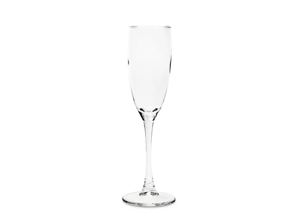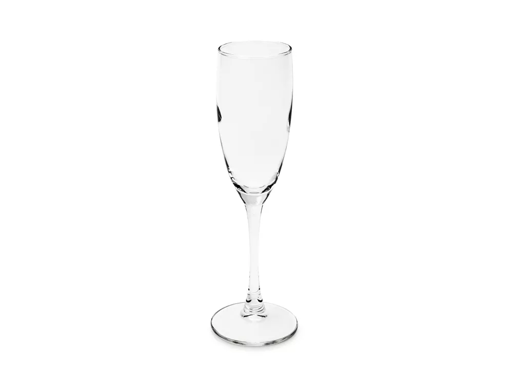 Узкий бокал на высокой ножке для шампанского. Объем 170мл. Тампопечать (1 цвет (цветные изделия)) на данный товар осуществляется бесплатно. Оплачивается только настройка оборудования в размере 2300 рублей на весь тираж.
