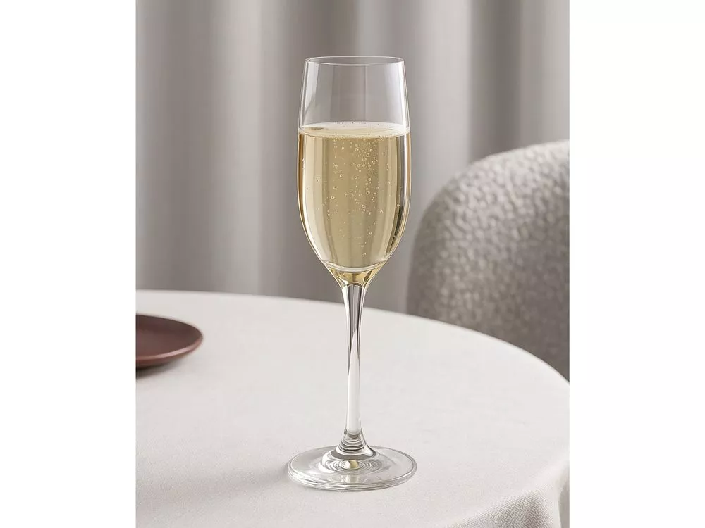 Классический бокал для шампанского выполнен из минерального стекла. Его легко мыть, он впишется в любой интерьер и сервировку, а также может стать частью вашего бара или ресторана. Форма этого бокала также называется флют — она специально рассчитана для игристых вин, не давая аромату слишком быстро улетучиваться вместе с пузырьками. - можно мыть в посудомоечной машине - классический объем и форма - выполнен из минерального стекла, сохраняет прозрачность и не тускнеет
