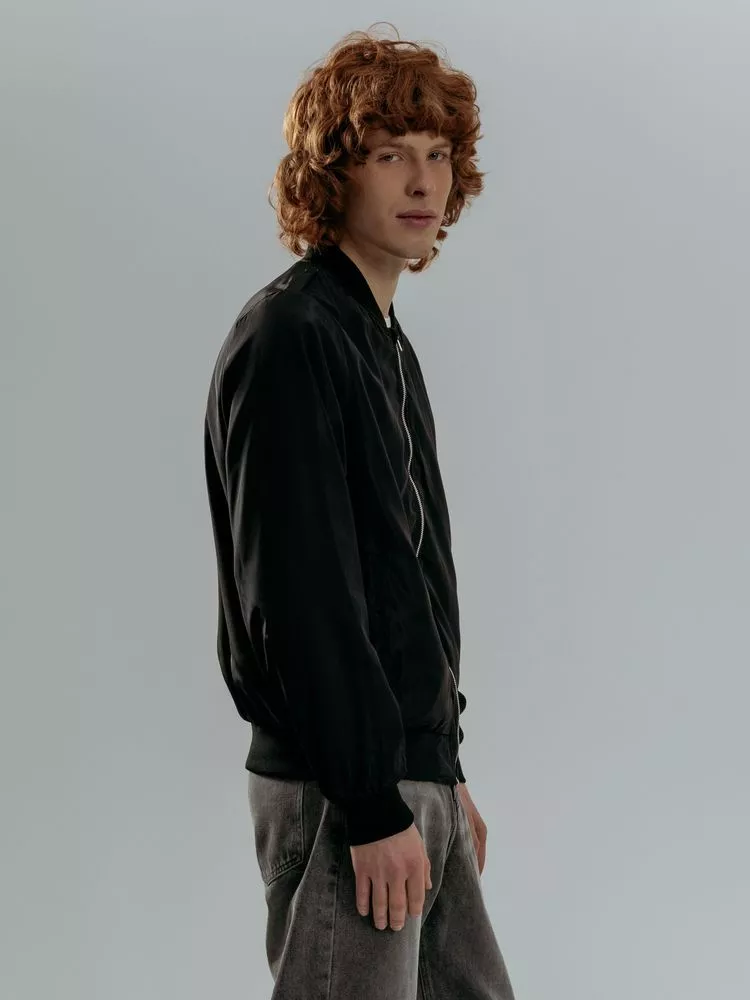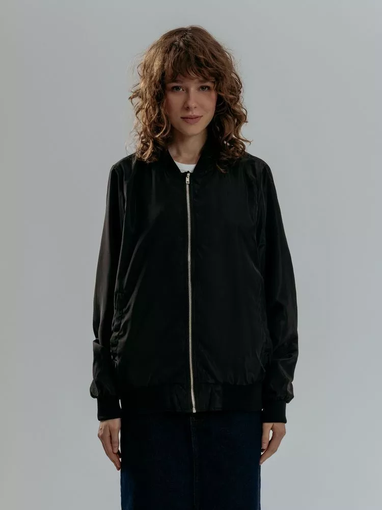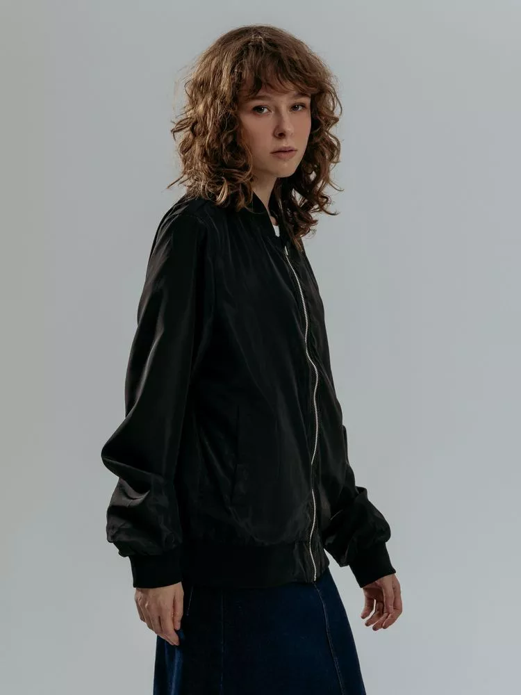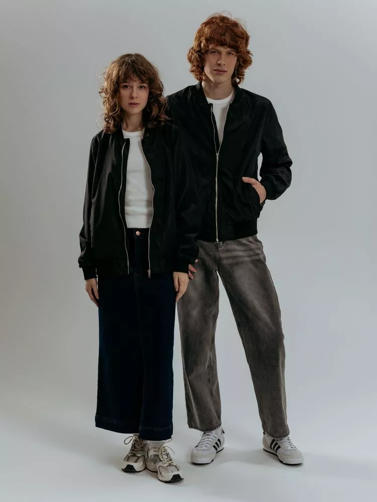 Куртка-бомбер унисекс на молнии с подкладкой тон в тон.