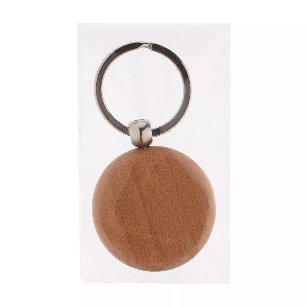 Круглый брелок из натурального дерева.
