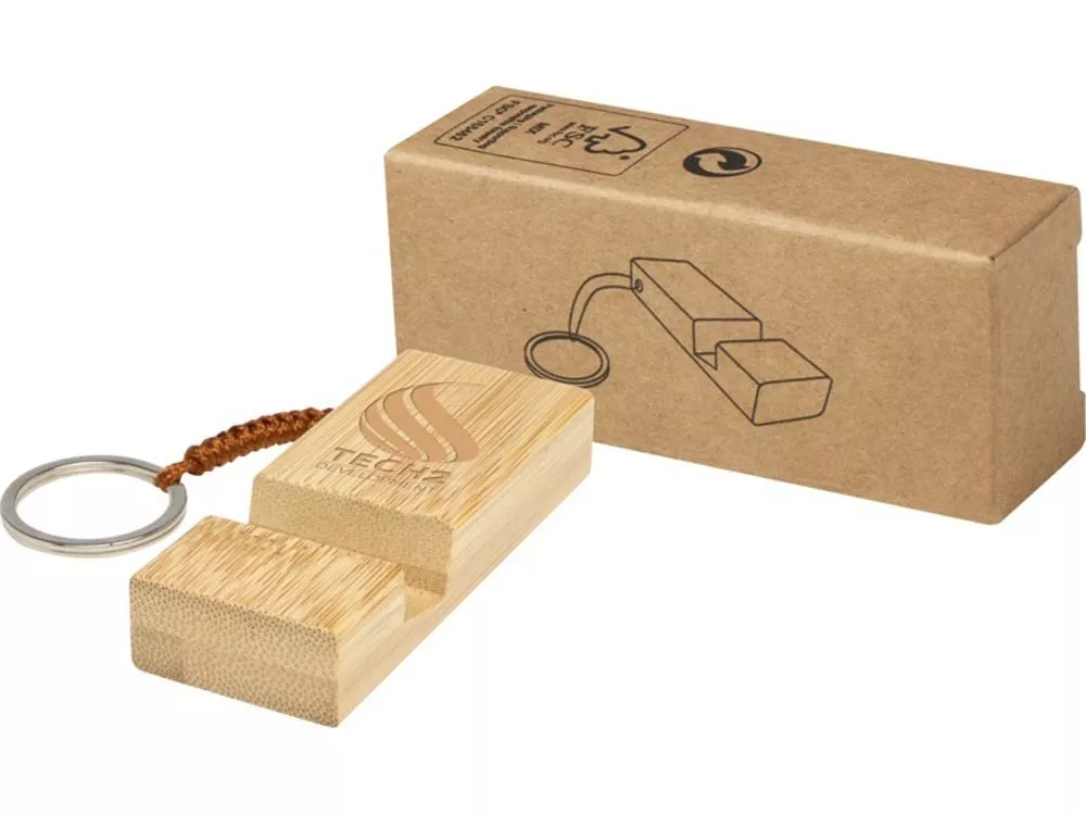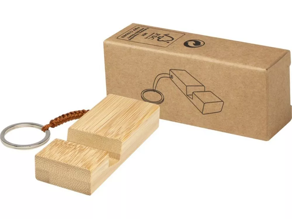 Держатель для телефона с брелком для ключей Bosona изготовлен из бамбука. Может быть как стильным аксессуаром, так и подставкой для телефона, которая всегда под рукой.