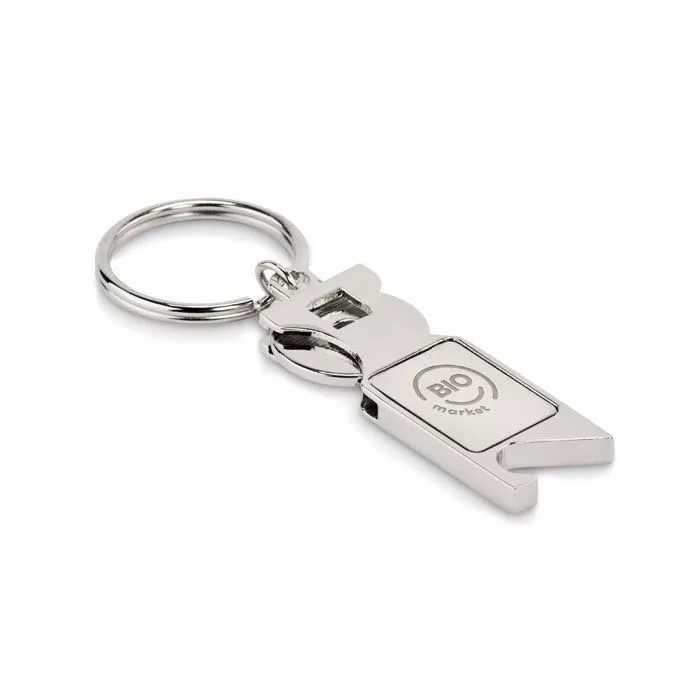 Брелок для ключей из цинкового сплава, включает жетон евро и открывалку для бутылок.