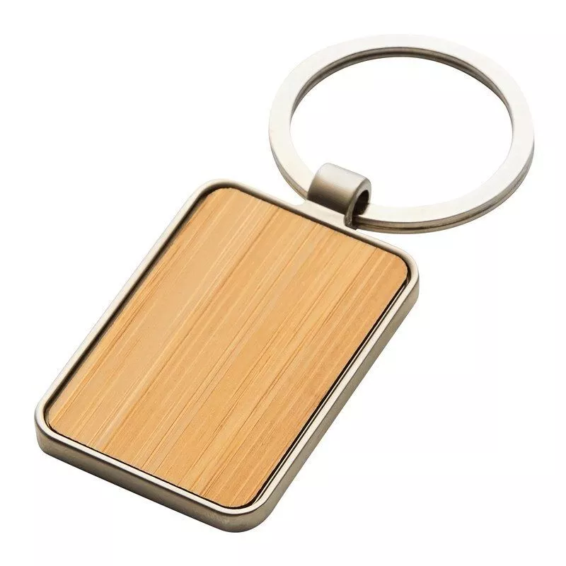 Металлический брелок для ключей в с бамбуковой вставкой.