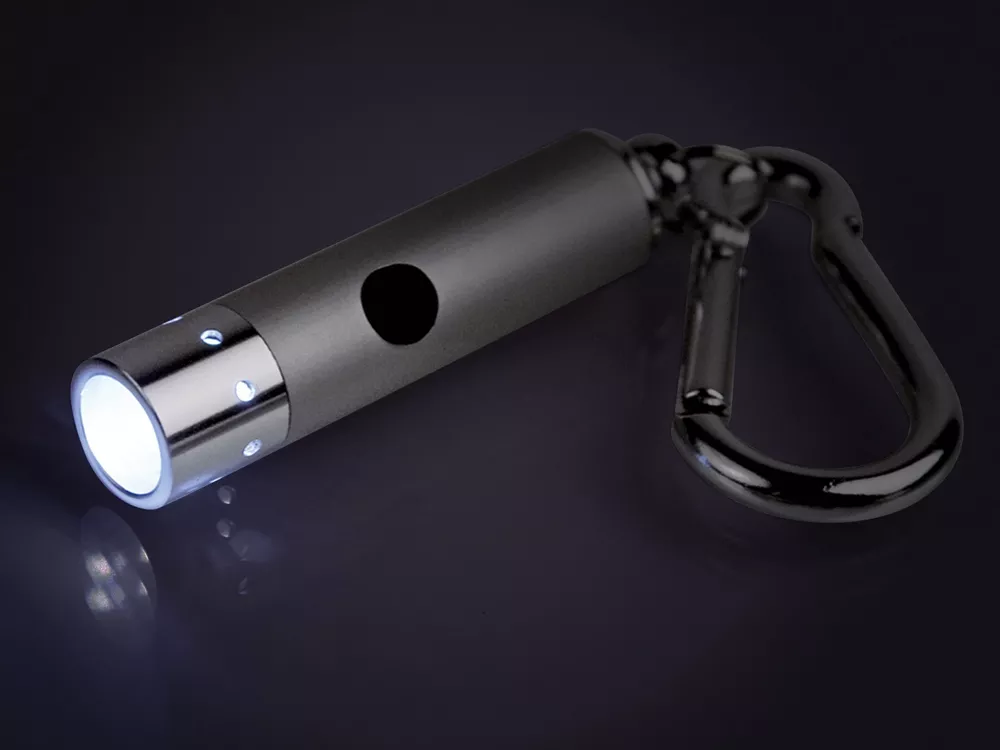 Металлический брелок имеет встроенный яркий фонарик, а вместо кольца крепления – симпатичный карабин. Очень пригодится для подсветки в темноте, ведь вряд ли кто-то ежедневно носит с собой обычный фонарь.
