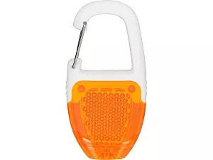 Брелок - фонарик с отражателем и карабином. Отражающий диодный фонарик с хромированным клипом и кнопкой включения/ выключения. Тампопечать (1 цвет (цветные изделия)) на данный товар осуществляется бесплатно. Оплачивается только настройка оборудования в размере 4000 рублей на весь тираж.