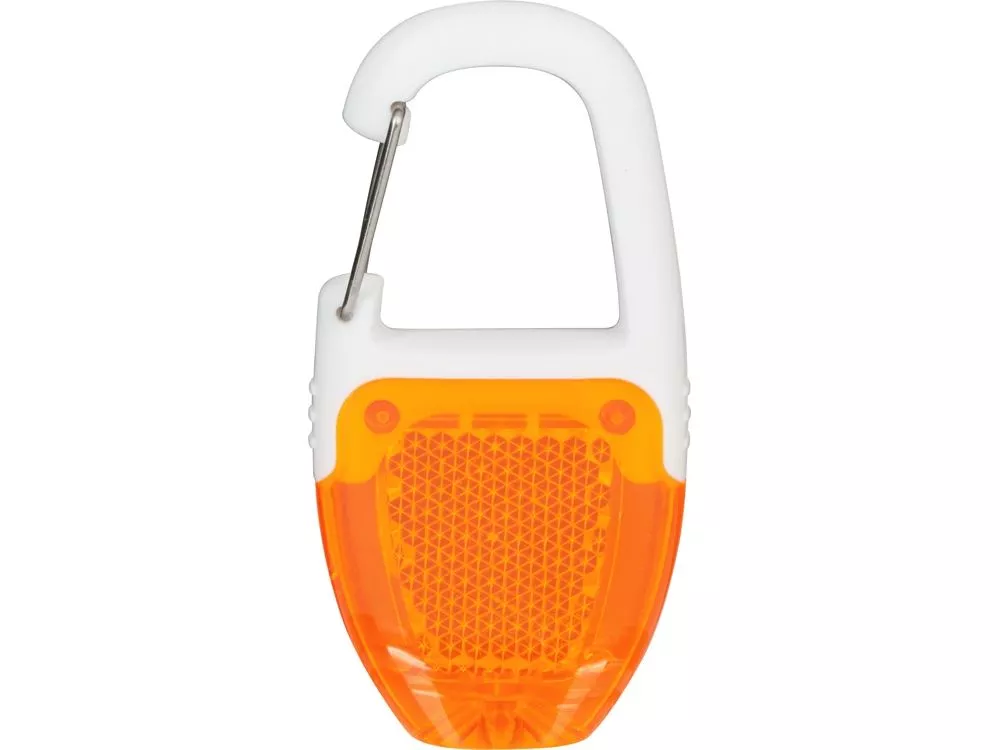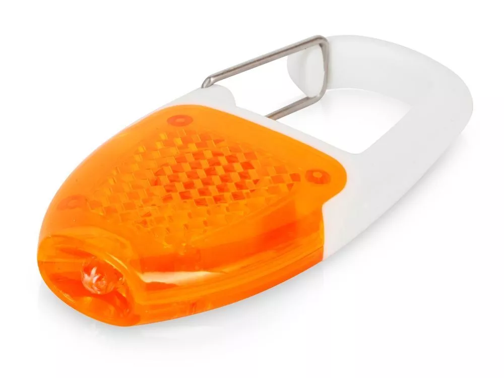Брелок - фонарик с отражателем и карабином. Отражающий диодный фонарик с хромированным клипом и кнопкой включения/ выключения. Тампопечать (1 цвет (цветные изделия)) на данный товар осуществляется бесплатно. Оплачивается только настройка оборудования в размере 4000 рублей на весь тираж.