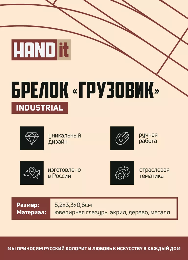 Бренд HANDit — российский бренд изделий из дерева, акрила и ювелирной глазури. В линейке бренда новогодние игрушки, настольные игры и брелоки. Каждое изделие изготовлено вручную.