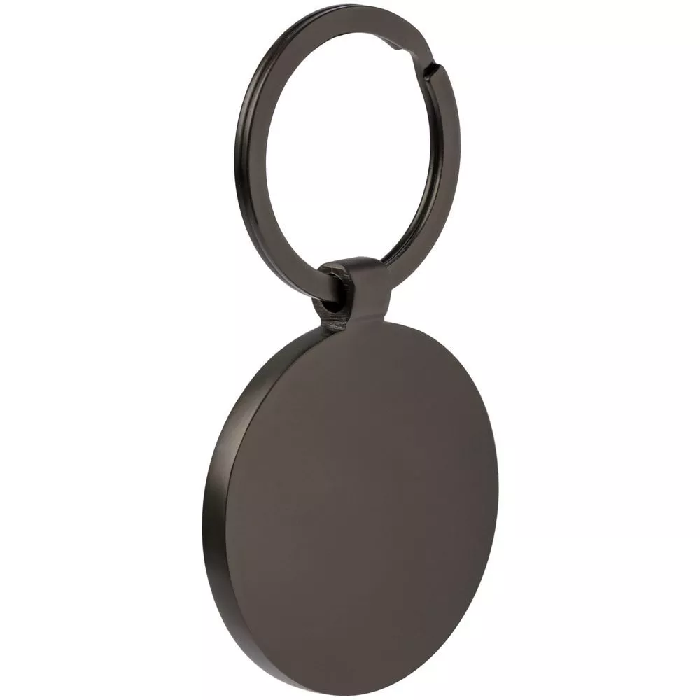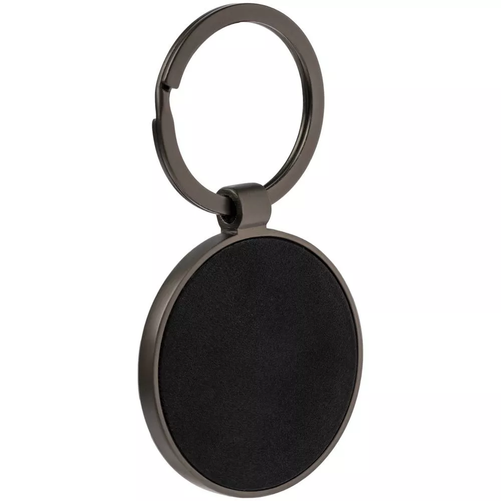 Металлический брелок со специальной вставкой из искусственной кожи для гравировки. При гравировке вставки проявляется серебристое изображение.