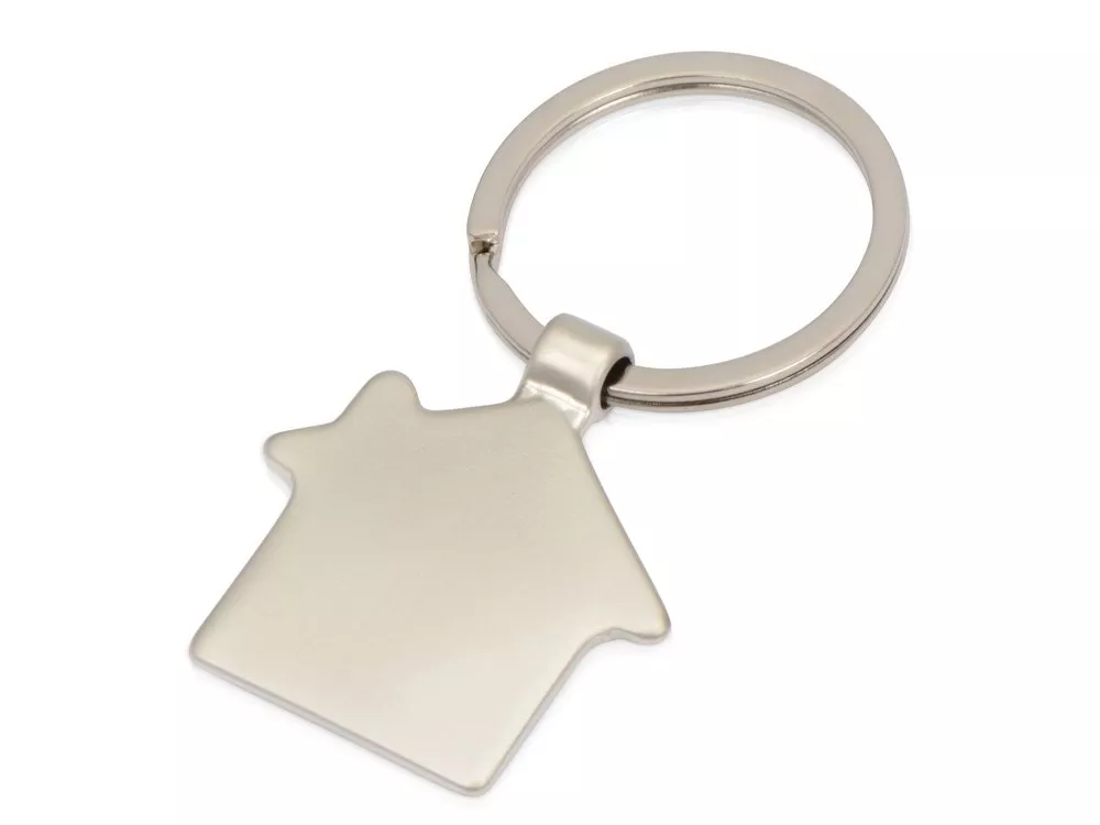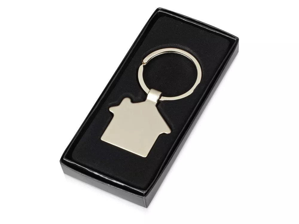 Оригинальный брелок в форме домика. Матовая металлическая поверхность идеально подходит для нанесения логотипа. Упакован в черную подарочную коробку.
