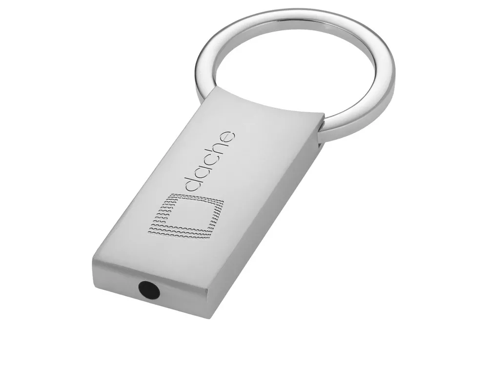 Прямоугольный брелок. Классический брелок со скрытой застежкой. Металлический брелок серебристого цвета может дополнить подарочный набор для партнеров по бизнесу. На брелок можно нанести логотип и наименование организации.