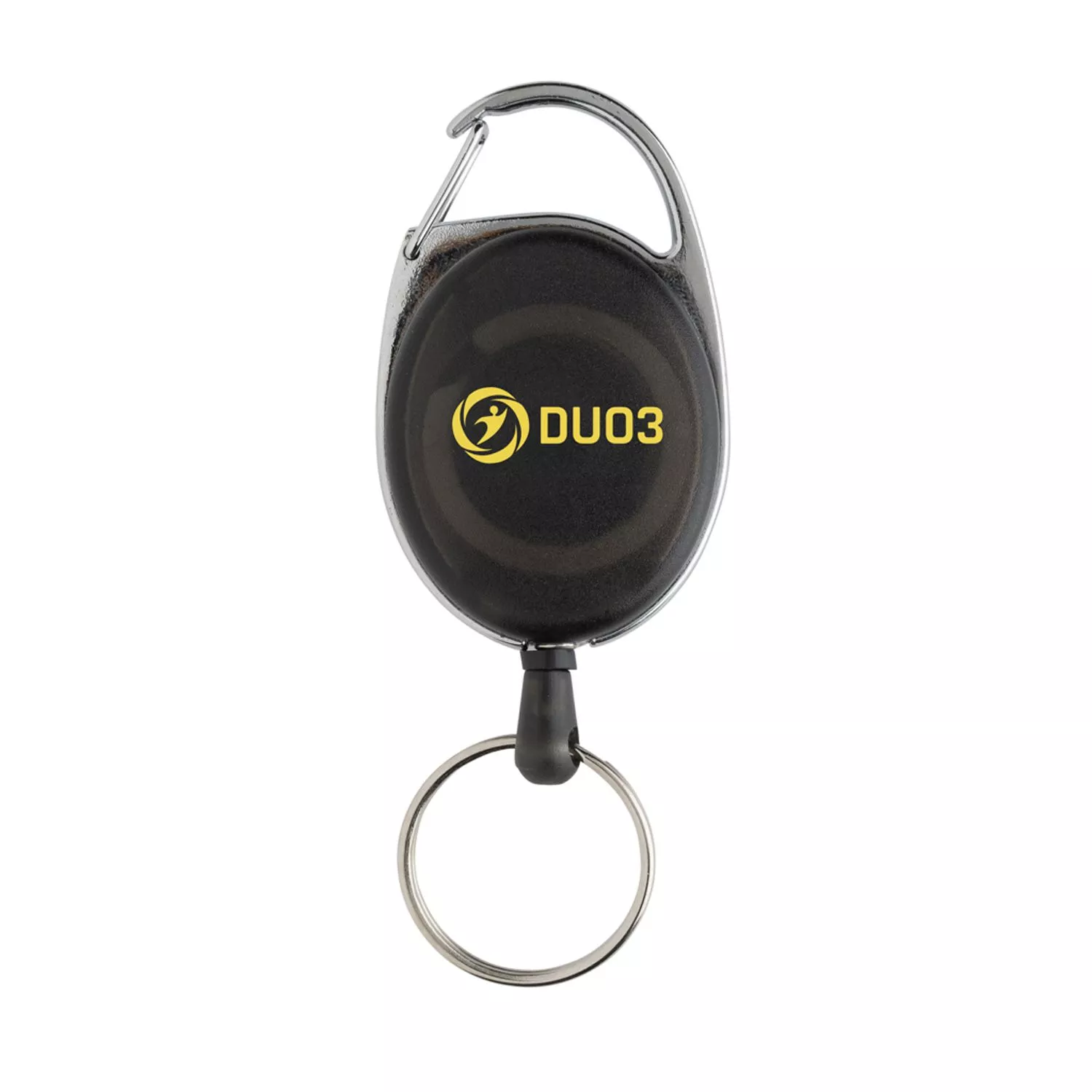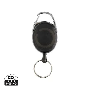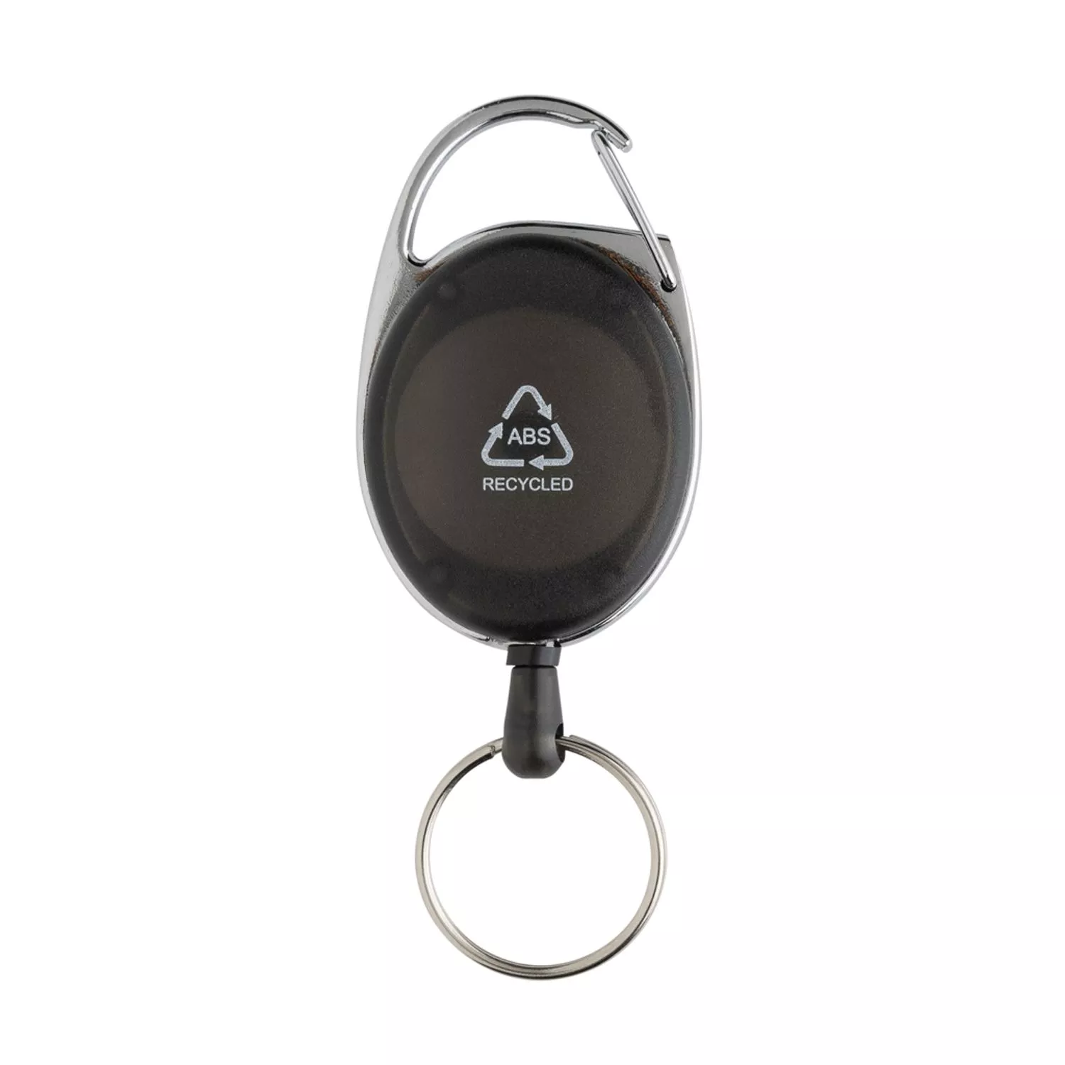 Брелок — универсальное дополнение к любому подарку. Это кольцо для ключей изготовлено из переработанного ABS-пластика и цинка и дополнено удобным карабином, который можно прикрепить к одежде, сумке или рюкзаку. Брелок оснащен шнуром, выдвигающимся на 60 сантиметров, — он подходит для использования с бейджем, например, на выставках или фестивалях. Памятный сувенир можно персонифицировать или украсить креативным брендированием: приятные впечатления гарантированы! Сертифицировано RCS. Эта сертификация полностью контролирует путь поставок переработанных материалов и гарантирует их наличие в изделии.