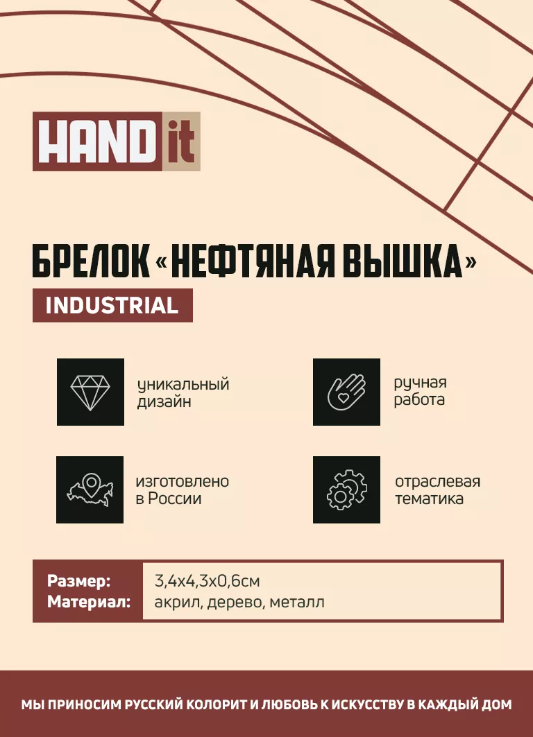 Бренд HANDit — российский бренд изделий из дерева, акрила и ювелирной глазури. В линейке бренда новогодние игрушки, настольные игры и брелоки. Каждое изделие изготовлено вручную.