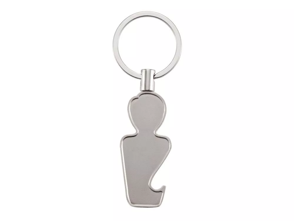 Отличный профессиональный подарок: брелок-открывалка, корпус которой изображает человека.