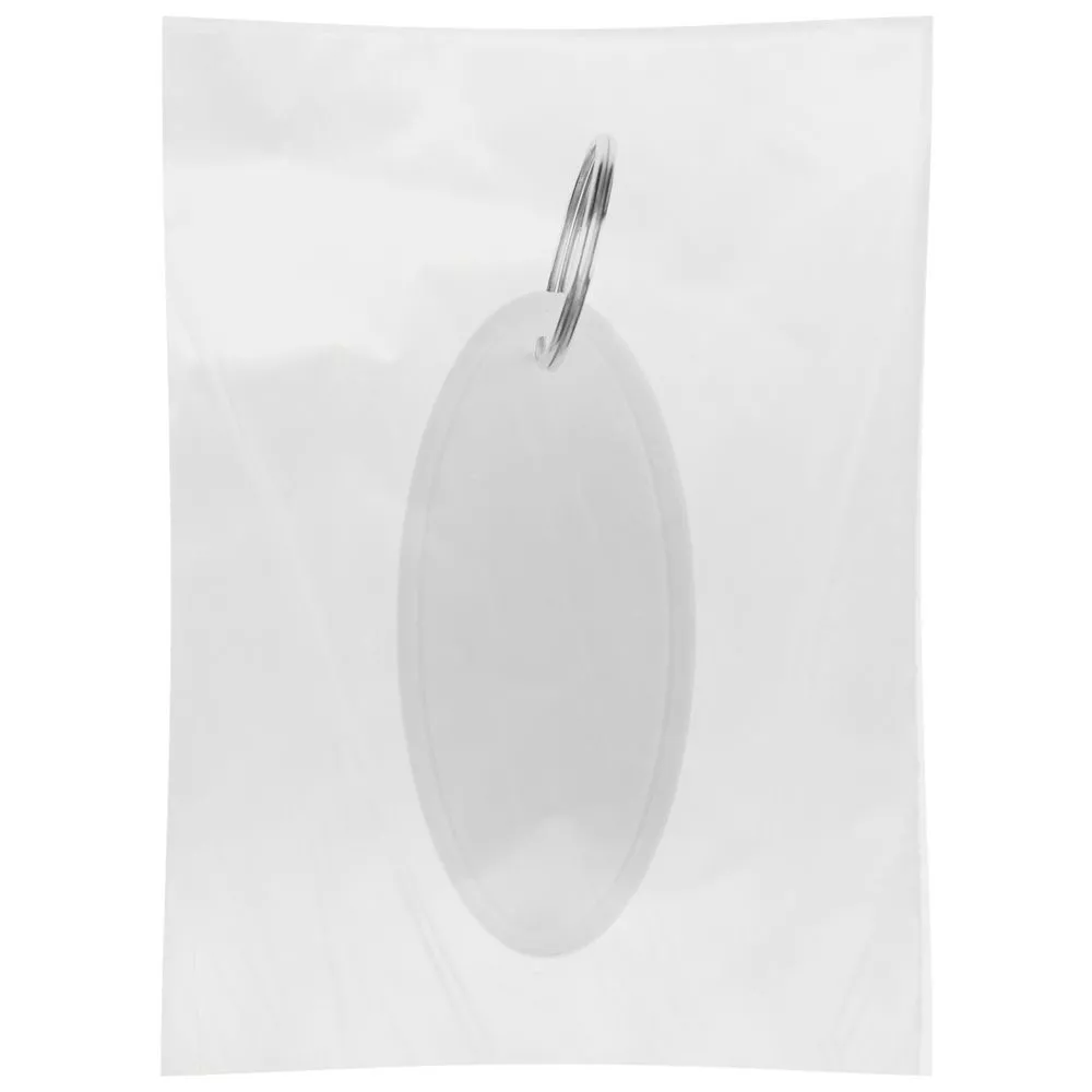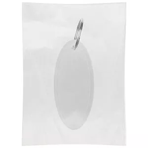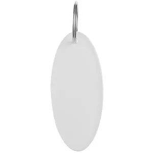 Лаконичный брелок из полипропилена с металлическим кольцом.