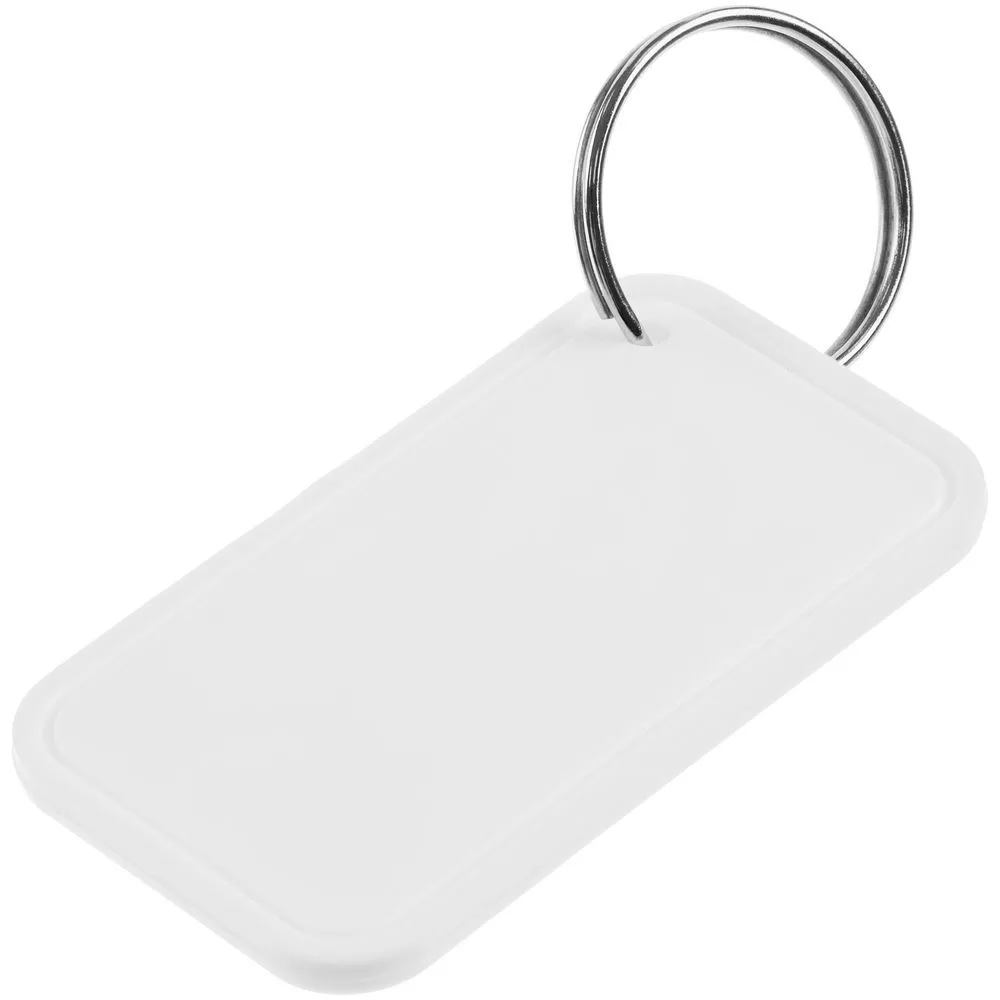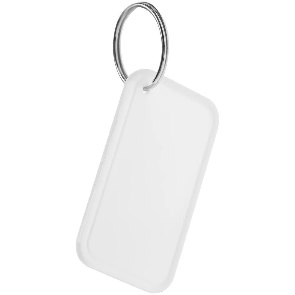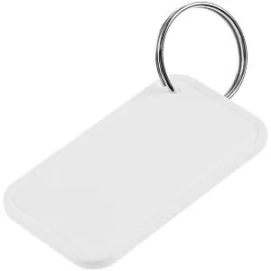 Лаконичный брелок из полипропилена с металлическим кольцом.