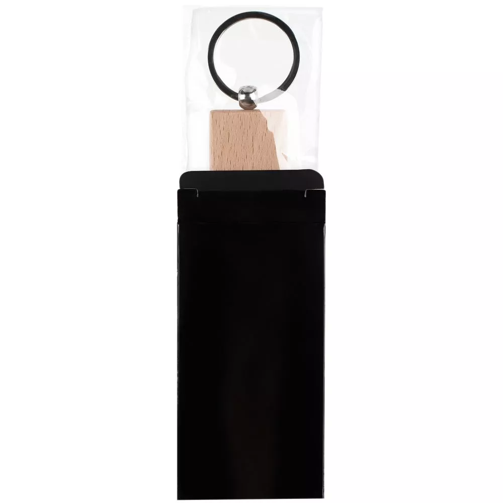 Прямоугольный брелок из натурального дерева.
