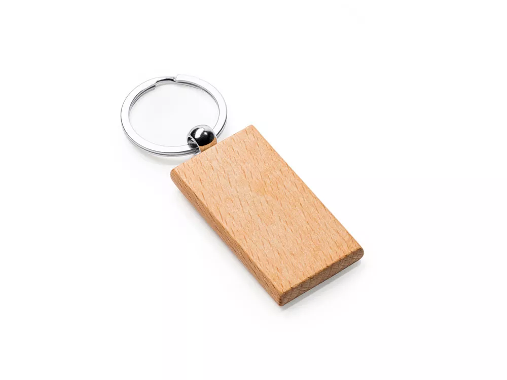 Брелок из натурального дерева с металлическим кольцом.