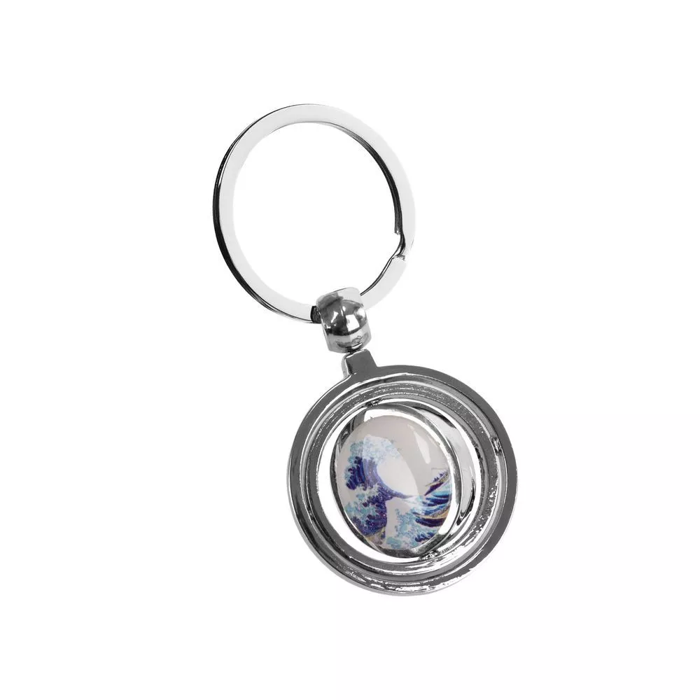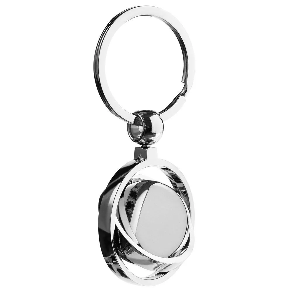 Брелок-антистресс с поворотным элементом: легким движением руки плоскость брелка превращается в трехмерную фигуру из окружностей разного диаметра.