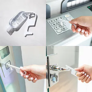 Гигиенический, антибактериальный и антиконтактный защитный брелок для ключей из прочного АБС-пластика. Специально разработан, чтобы не прикасаться руками к поверхностям общественного пользования (дверные ручки, переключатели, сантехические краны, банкоматы и др.).