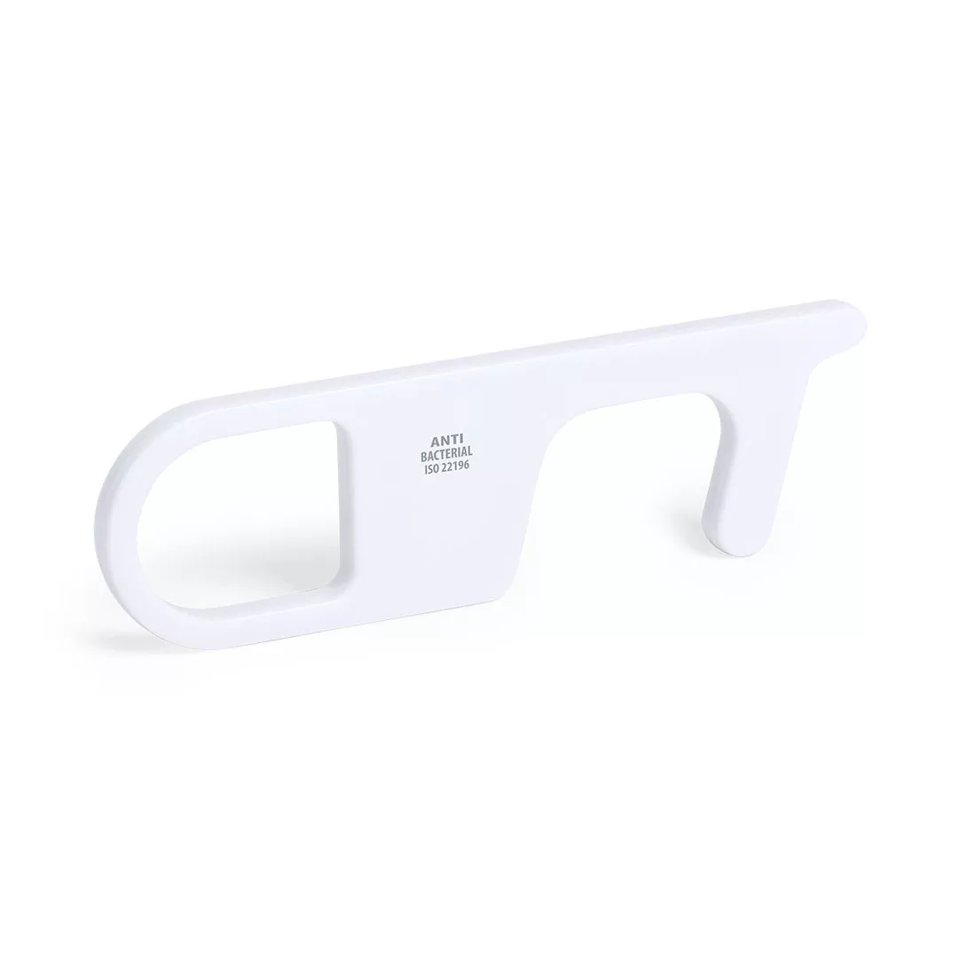Гигиенический, антибактериальный и антиконтактный защитный брелок для ключей из прочного АБС-пластика. Специально разработан, чтобы не прикасаться руками к поверхностям общественного пользования (дверные ручки, переключатели, сантехические краны, банкоматы и др.).