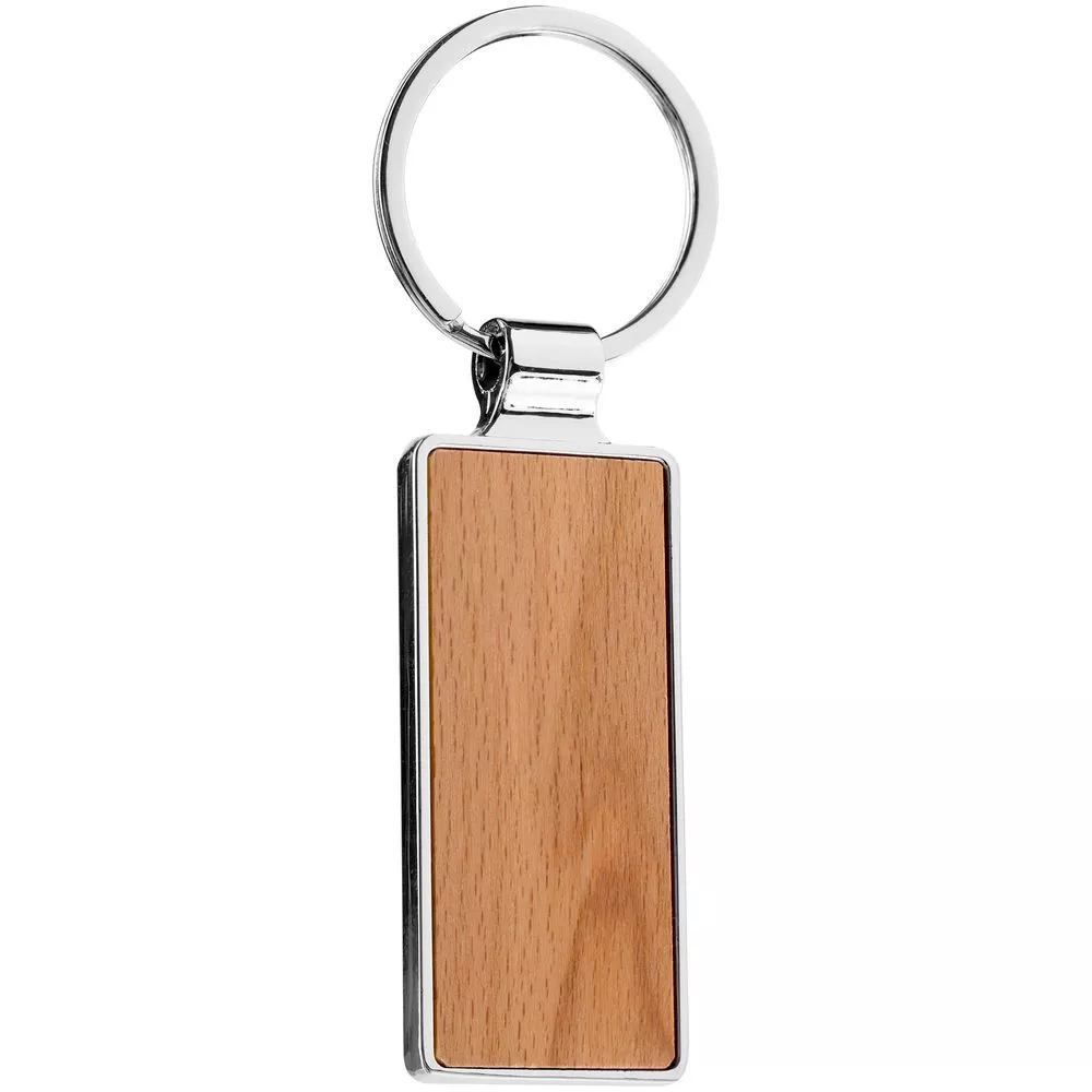 Прямоугольный металлический брелок со вставкой из натурального дерева. Подойдет для клиентов, отдающих предпочтение качественным натуральным материалам.Поставляется в индивидуальной упаковке.