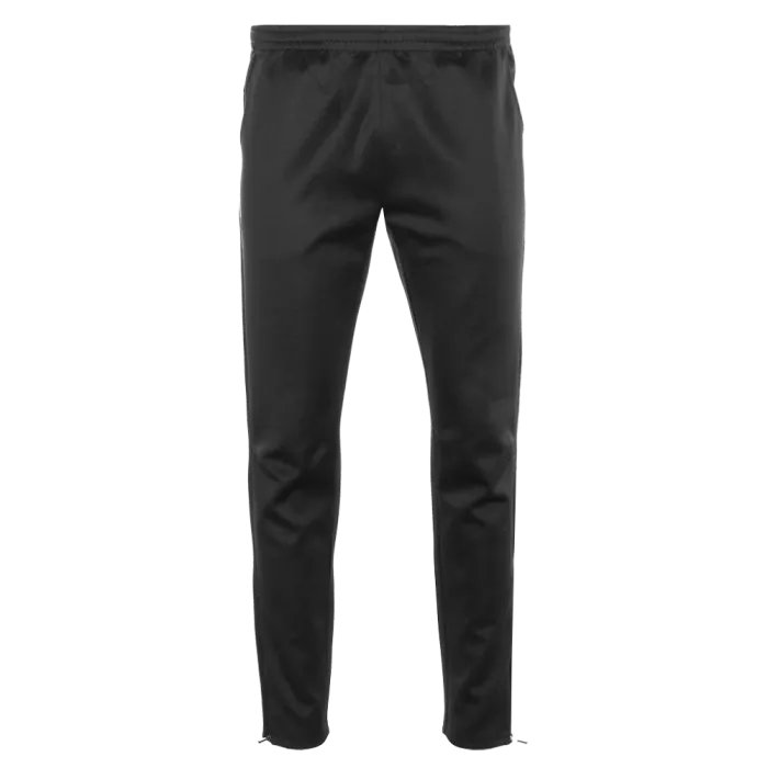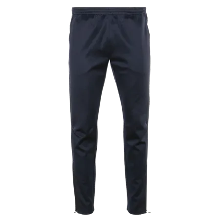 Брюки мужские для спортивных мероприятий и униформы спортивных команд; для повседневной носки и занятий спортом. Благодаря наличию в составе ткани эластана - брюки держат форму и не деформируются во время занятий спортом. Изделие не скатывается и не деформируется при стирке и других механических воздействиях, очень проста в уходе. Эластичный пояс регулируется шнурком. В нижней части брюк вшиты молнии застёжки.