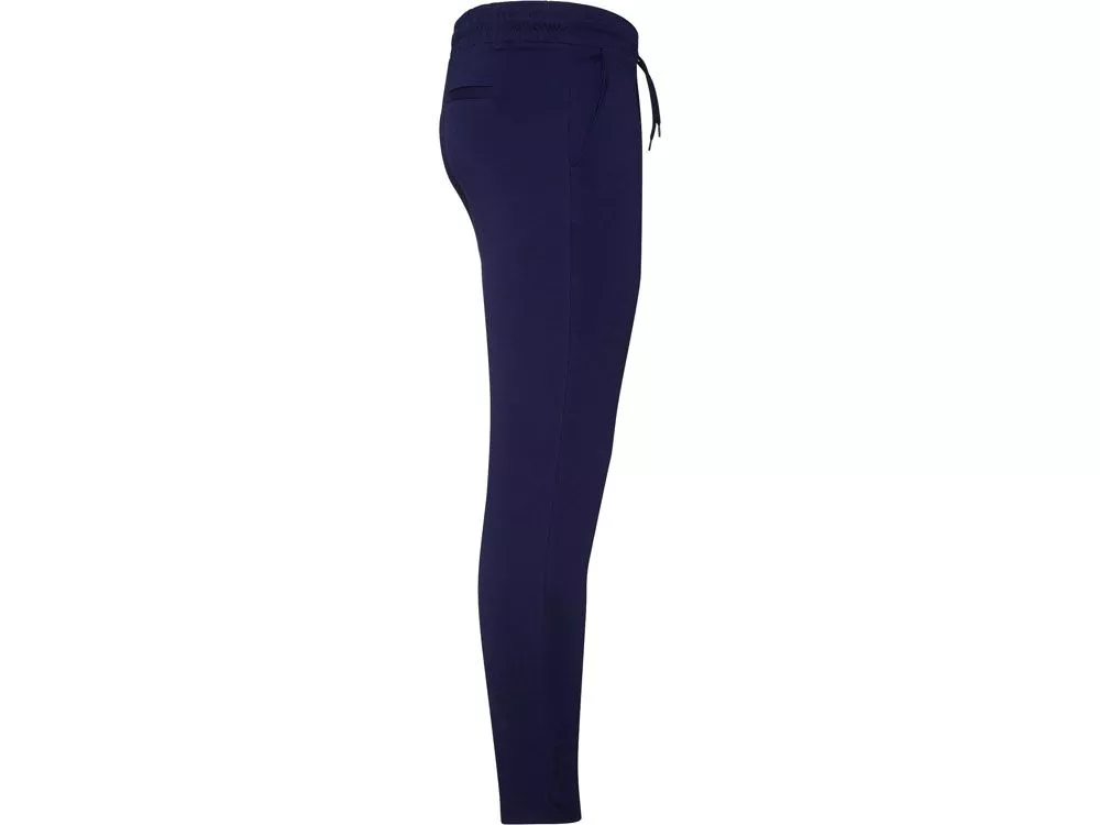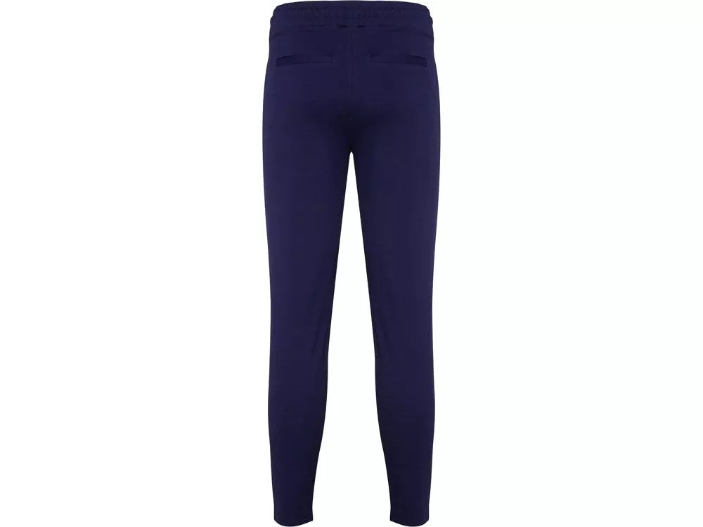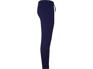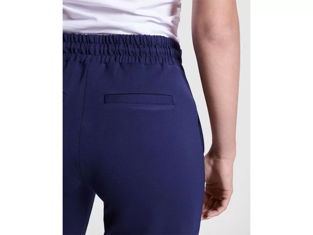 Женские брюки из эластичной ткани. · Эластичный пояс на кулиске сзади. · Складки спереди. · Два передних кармана. · Два задних кармана на пуговицах.