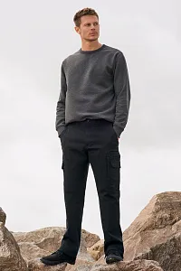 Мужские брюки современного кроя с застежкой-молнией и металлической пуговицей. Петельки для ремня, передние косые карманы.