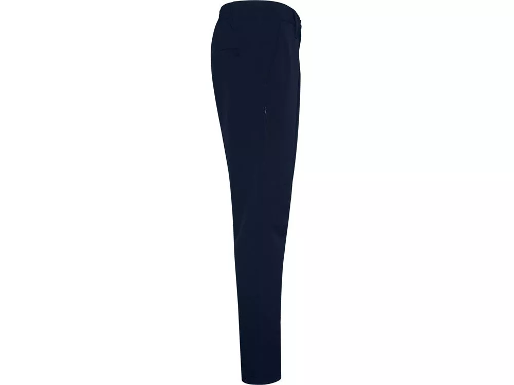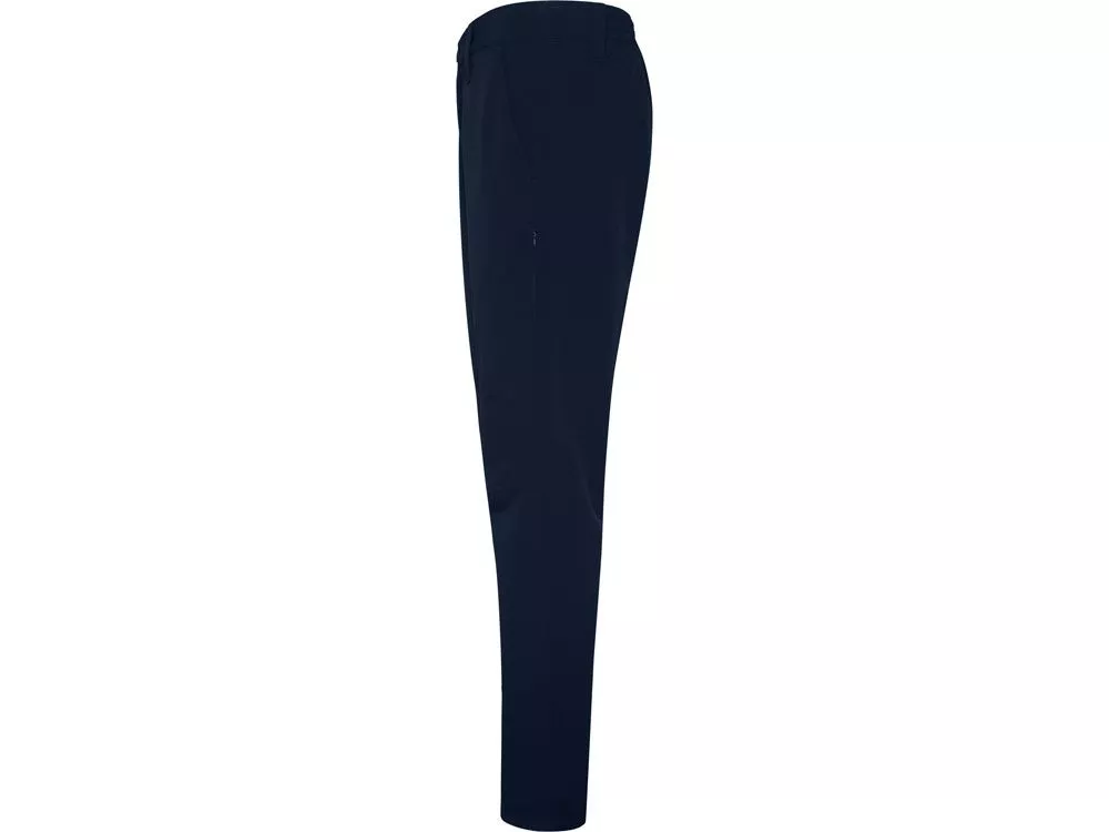 Длинные брюки унисекс из техничной ткани. - Регулируемый эластичный пояс. - Шлевки. - Два боковых наклонных кармана. - Два боковых кармана в швах на потайных молниях. - Задний карман на кнопке. - Защипы на коленях. - Двойной шов на внутренней стороне штанин, шаговом шве и подгибе низа. - Пластиковые регуляторы с эластичной резинкой по низу.