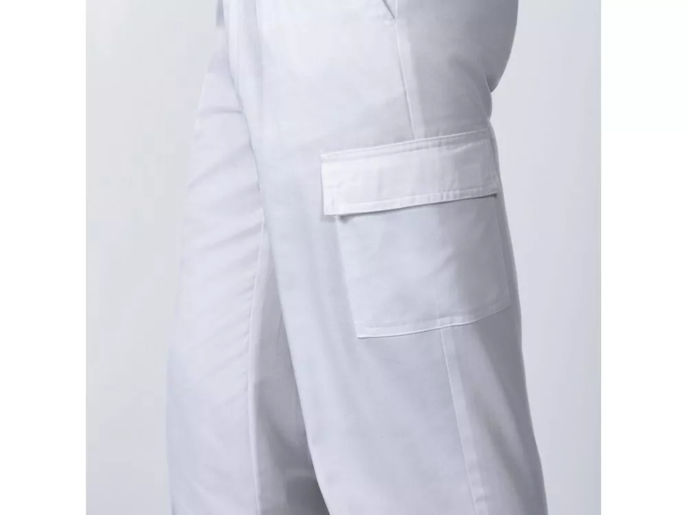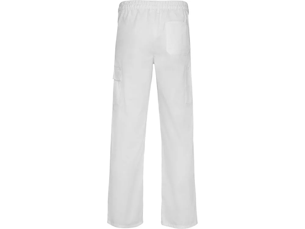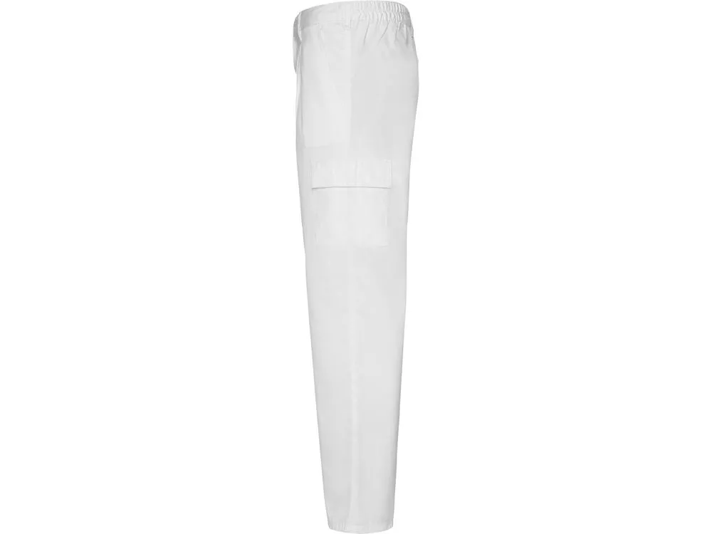 Брюки из прочной ткани. 1. Регулируемый эластичный пояс сзади. 2. Два кармана спереди. 3. Один боковой карман с клапаном на липучке. 4. Один функциональный карман сзади. 5. Боковой карман: узкий и без клапана.