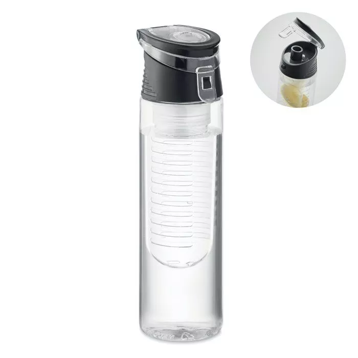 Бутылка для воды из переработанного пластика со съемной насадкой для фруктов, ручкой для переноски и герметичной крышкой. Объем 500 мл.