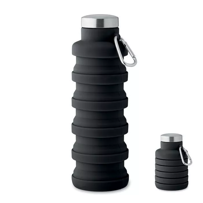 Складная силиконовая бутылка с крышкой из нержавеющей стали и алюминиевым карабином. Карабин не предназначен для альпинизма (непрофессиональное использование). Объем: 500 мл.