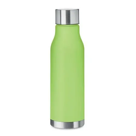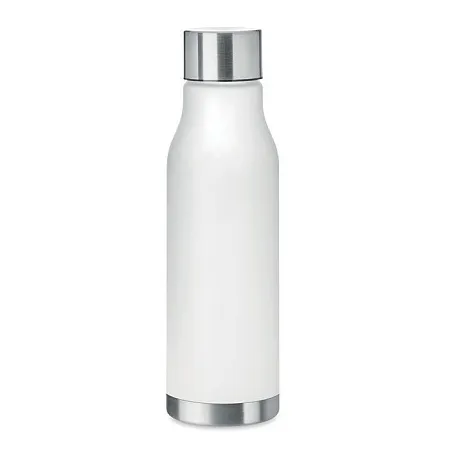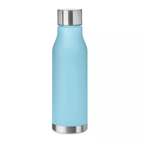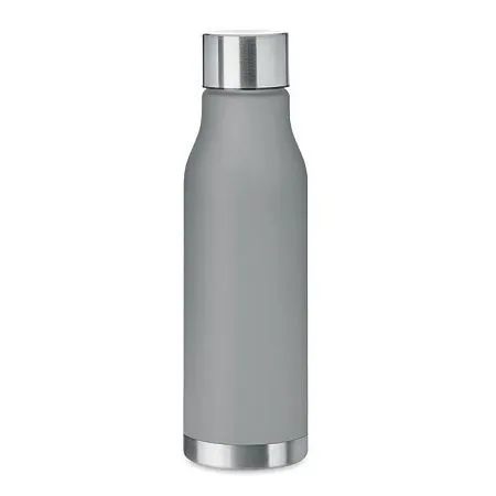 Питьевая пластиковая бутылка (RPET) с прорезиненным покрытием и крышкой из нержавеющей стали и пластика с внутренней стороны (RPET), а также силиконовым кольцом. Полная герметичность. Емкость: 600 мл.Не протекает.