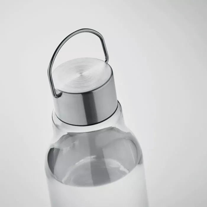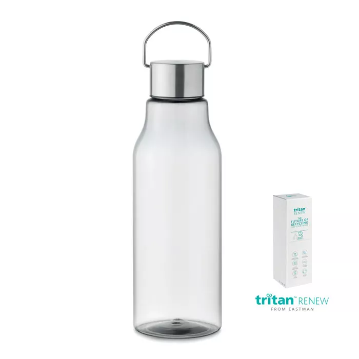 Бутылка для питья из тритана, не содержащего BPA, с крышкой из нержавеющей стали. Герметична. Емкость 800 мл. Этот продукт на 50% состоит из переаботанных отходов пластика с использованием сертификата ISCC.