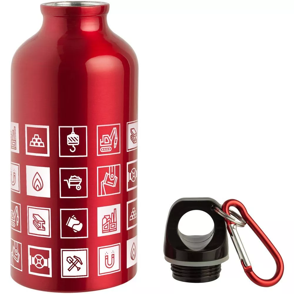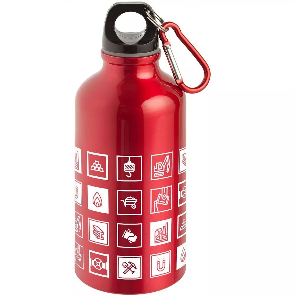 В каждой части общего рисунка изображены главные символы металлургической промышленности.Легкая и миниатюрная бутылка для воды с плотно завинчивающейся крышкой.