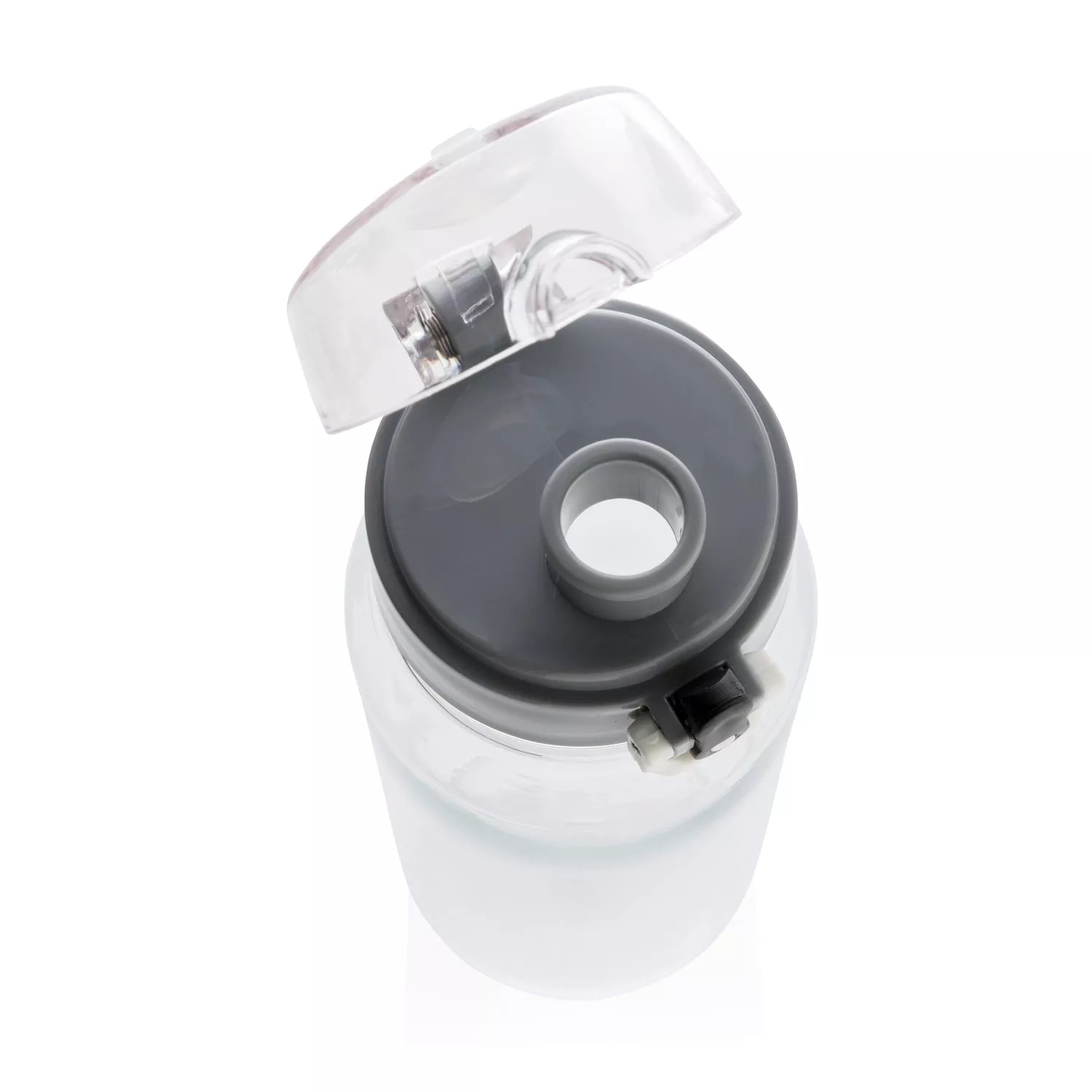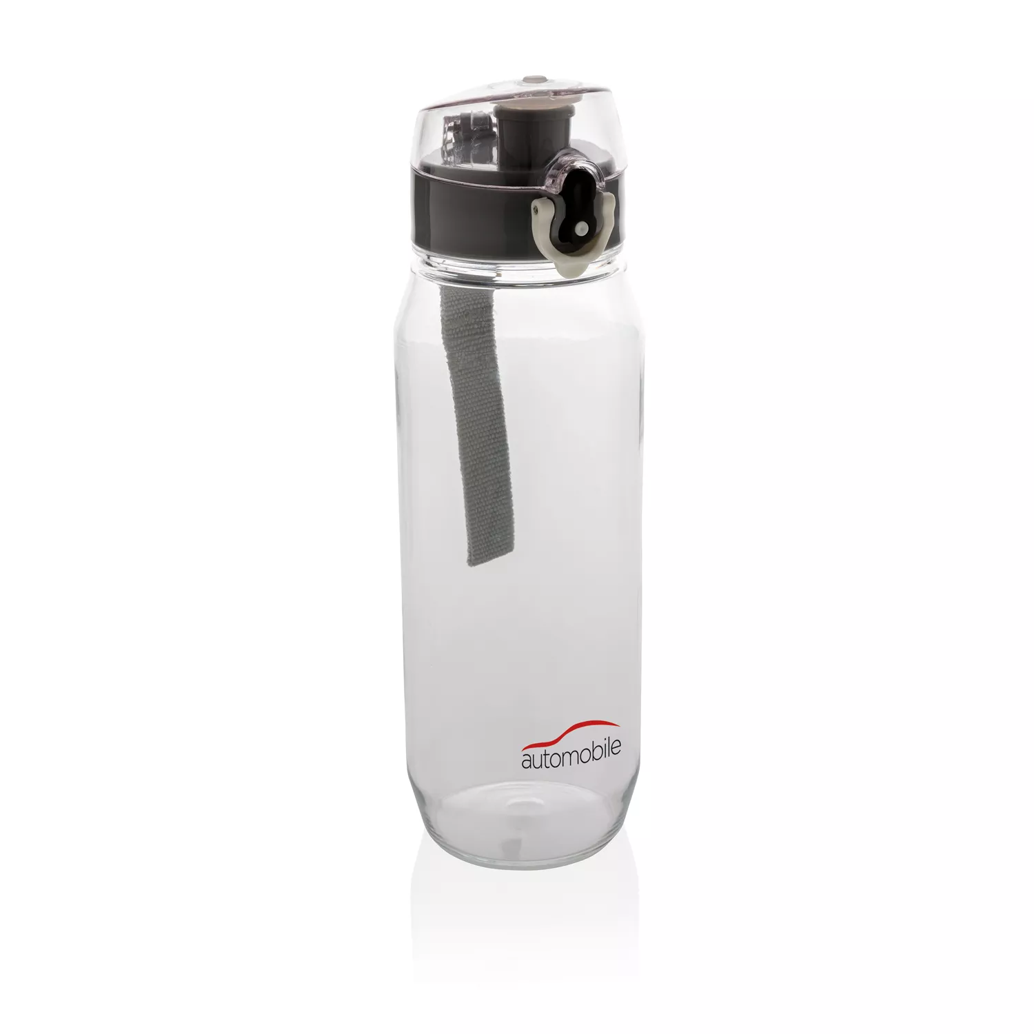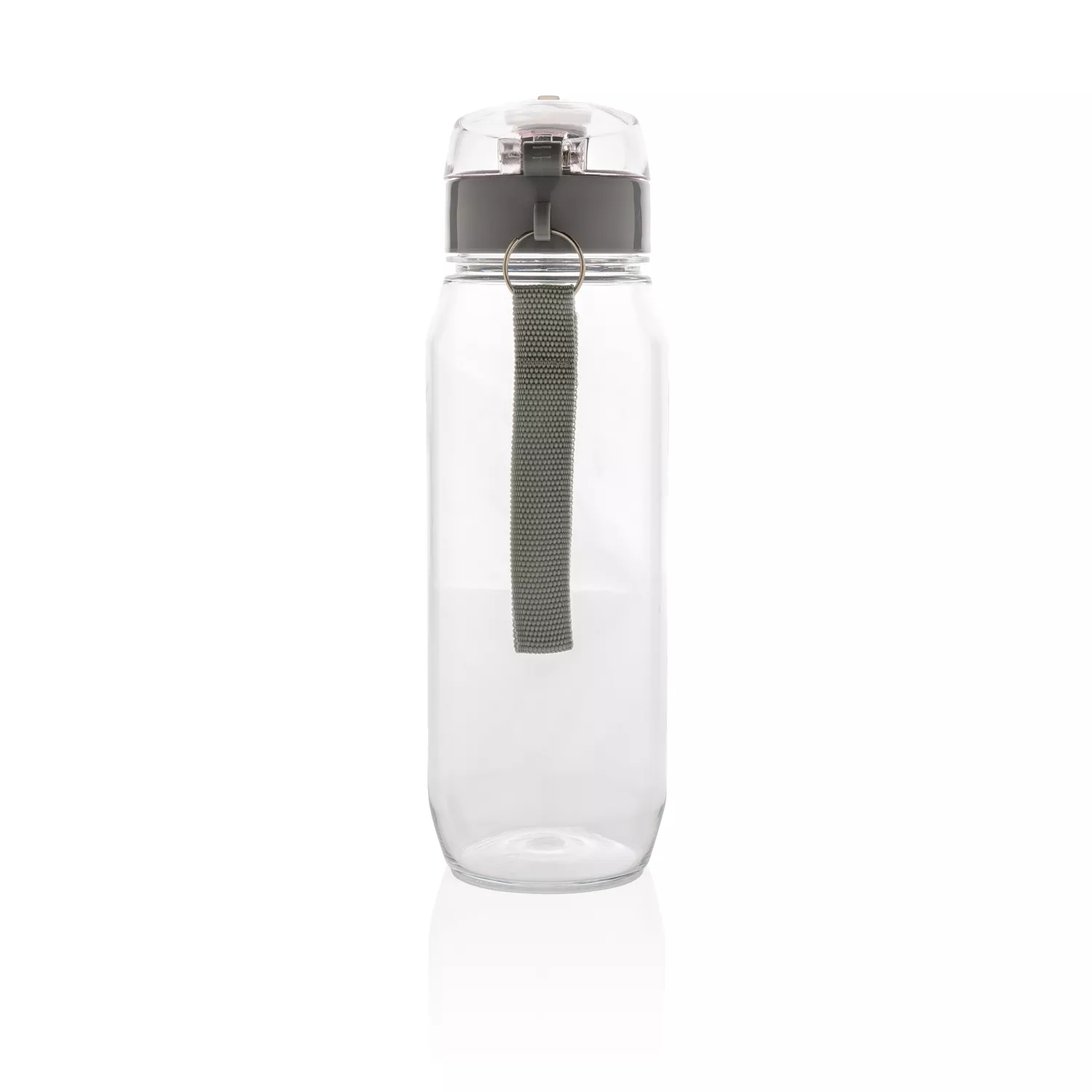 Бутылка для воды Tritan объемом 800 мл. Прозрачная бутылка из экологичного материала, который не впитывает запахи и не содержит бисфенол. У бутылки удобная крышка, которая открывается нажатием на кнопку, есть фиксатор, который не позволит бутылке случайно открыться во время движения. В комплект входит ремешок для запястья.