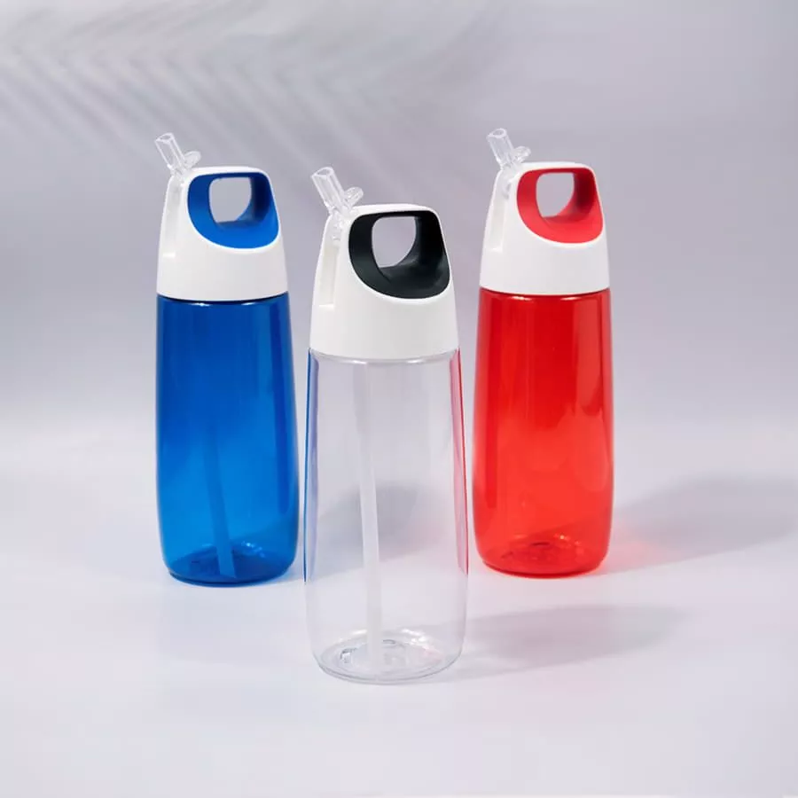 Бутылка с выдвигающейся трубочкой для питья и эргономичной крышкой для удобства переноски.