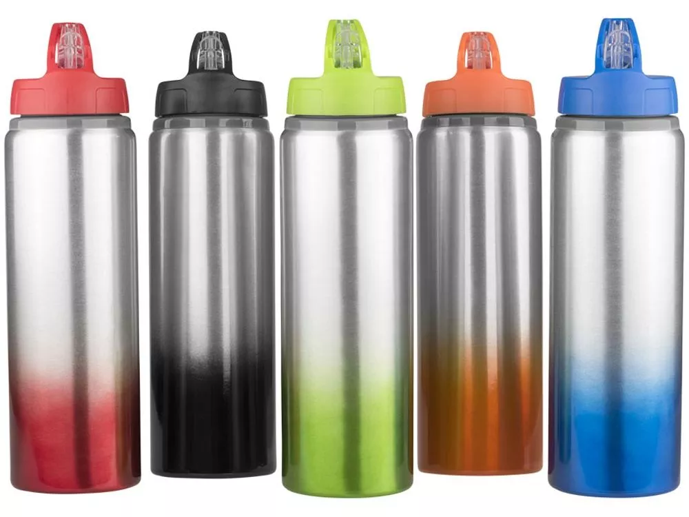 Бутылка Gradient. Бутылка с одинарными стенками, откручивающейся крышкой и закрывающимся отверстием для питья. Удобно в дороге. Привлекательный цветовой дизайн. Объем 740 мл. Алюминий без БФА. Гравировка (оптоволоконный лазер) (Без чернения) на данный товар осуществляется бесплатно. Оплачивается только настройка оборудования в размере 1100 рублей на весь тираж.