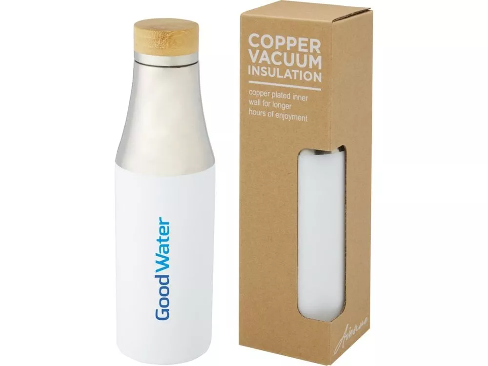 Простота и элегантность делают эту бутылку идеальным подарком. Бутылка имеет крышку из нержавеющей стали с элементом из органического бамбука на верхней части. Благодаря двустенной конструкции, медной вакуумной изоляции и нержавеющей стали 18/8 напитки несколько часов остаются горячими или холодными. Протестировано и одобрено согласно немецкому законодательству о безопасности пищевых продуктов (LFGB), а также проверено на содержание фталатов согласно нормам REACH. Объем 540 мл. В коробке из переработанного картона. Нержавеющая сталь, бамбуковое дерево.