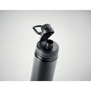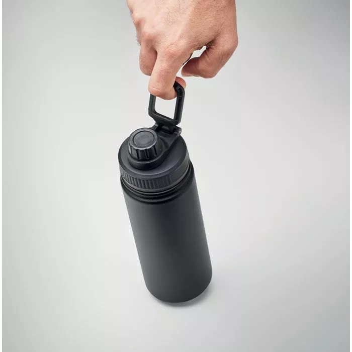 Бутылка с двойными стенками из нержавеющей стали с вакуумной изоляцией, крышкой-непроливайкой на крышке и ручкой для переноски. Емкость: 500 мл.