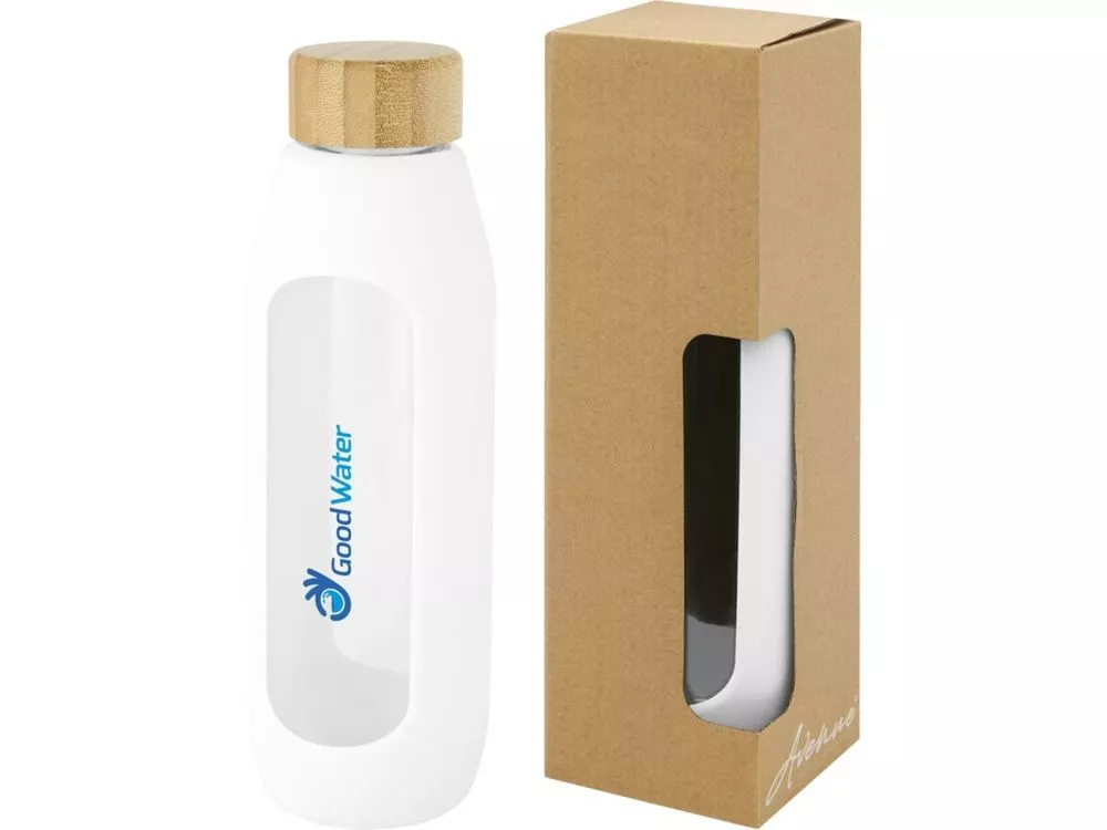 Экологичная многоразовая бутылка для воды, которая сохраняет воду чистой. Бутылка изготовлена из прочного боросиликатного стекла без содержания вредных химических веществ, благодаря чему сохраняется настоящий вкус чистой свежей воды. Имеет силиконовый держатель и герметичную крышку из органического бамбука. Протестировано и одобрено согласно немецкому законодательству о безопасности пищевых продуктов (LFGB), а также проверено на содержание фталатов согласно нормам REACH. Объем 600 мл. Сняв держатель и крышку, бутылку можно мыть в посудомоечной машине. В подарочной коробке из переработанного картона.