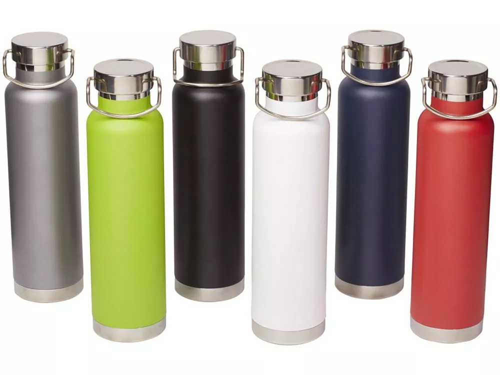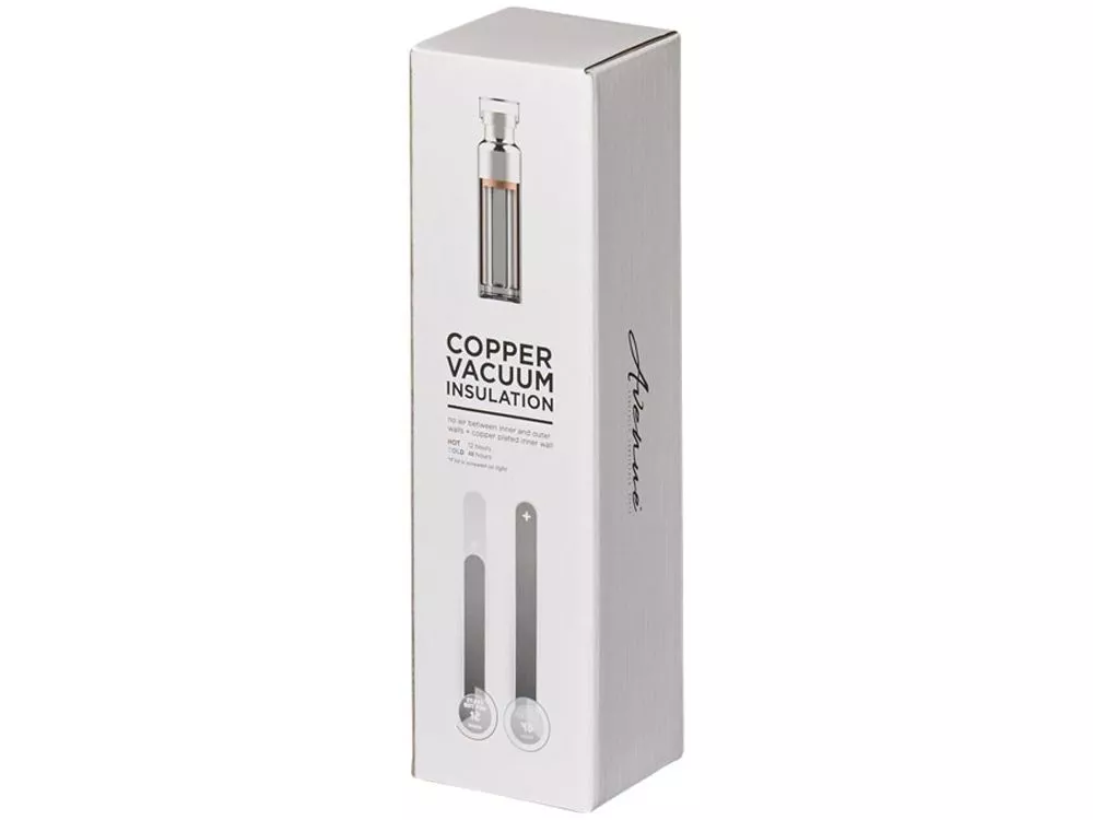 Бутылка с вакуумной медной изоляцией. Прочная конструкция бутылки с двойными стенками из нержавеющей стали с медной изоляцией позволяет вашим напиткам оставаться горячими до 12 часов и холодными до 48 часов. Конструкция так же исключает появление конденсата на внешней поверхности бутылки. Трендовое прочное покрытие. Откручивающаяся крышка из нержавеющей стали, защищенная от протеканий, с удобным отверстием для руки. Широкое отверстие для удобства чистки и наливания напитков. Отлично подойдет для кубиков льда. Объем 650 мл. Нержавеющая сталь. Гравировка (CO2 лазер) (Без чернения) на данный товар осуществляется бесплатно. Оплачивается только настройка оборудования в размере 1000 рублей на весь тираж.