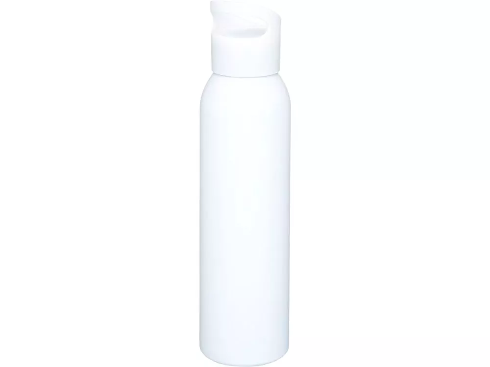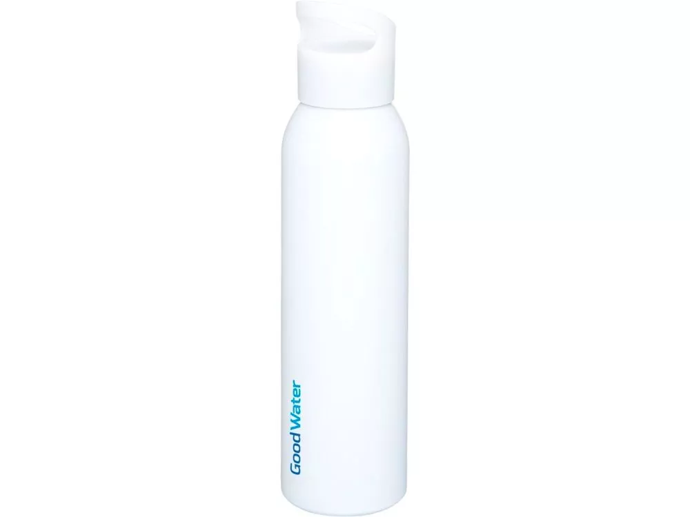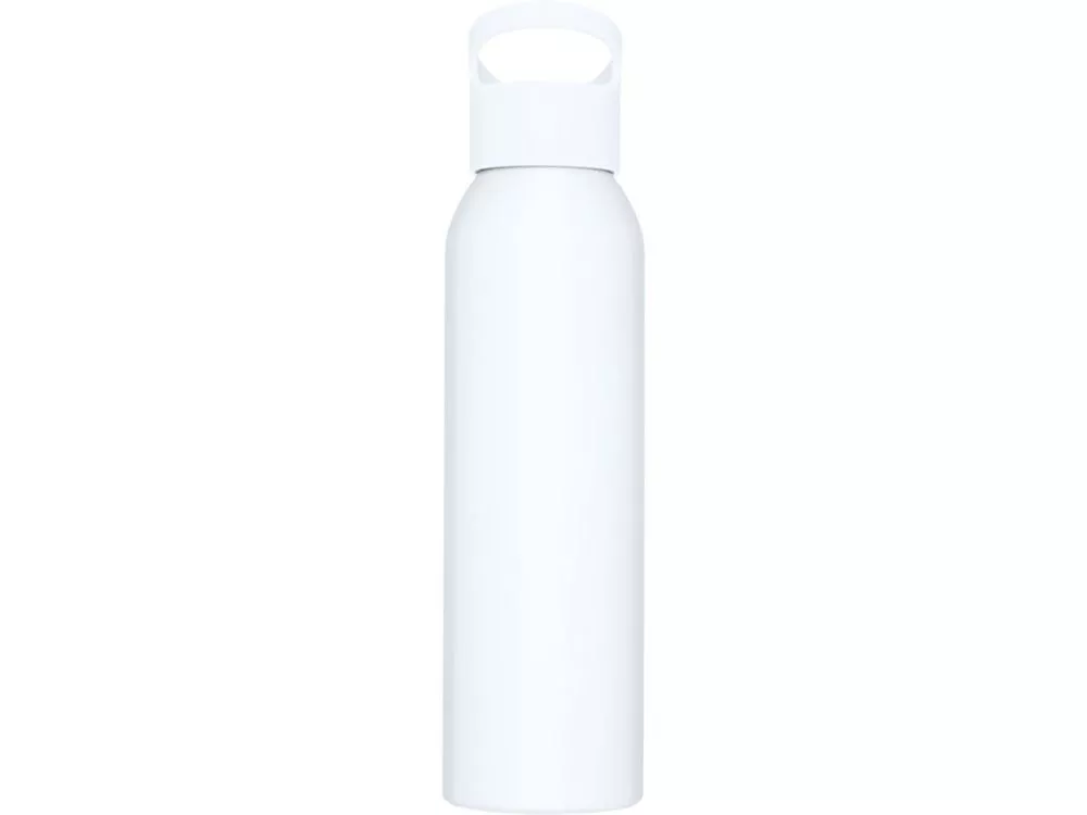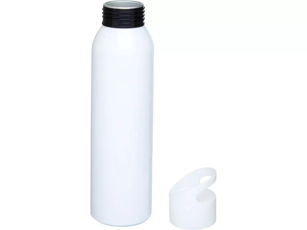 Алюминиевая бутылка с одинарными стенками и съемной крышкой. На крышке есть ручка для удобной переноски. Без содержания БФА. Объем 650 мл. Трафаретная печать круговая (1 цвет (белые изделия)) на данный товар осуществляется бесплатно. Оплачивается только настройка оборудования в размере 2300 рублей на весь тираж.